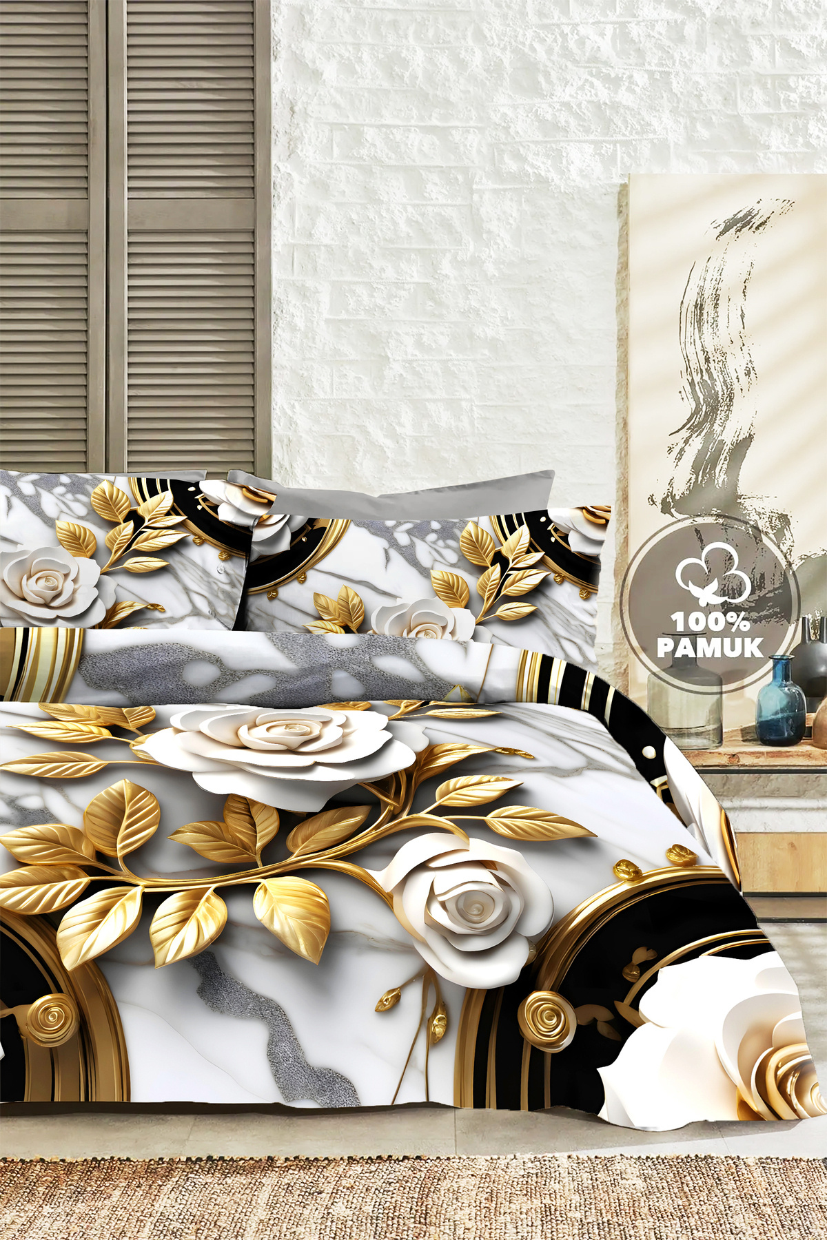 %100 PAMUK Ranforce Çeyizlik Luxury 5D Dijital Battal Çift Kişilik Nevresim Takımı Sakura