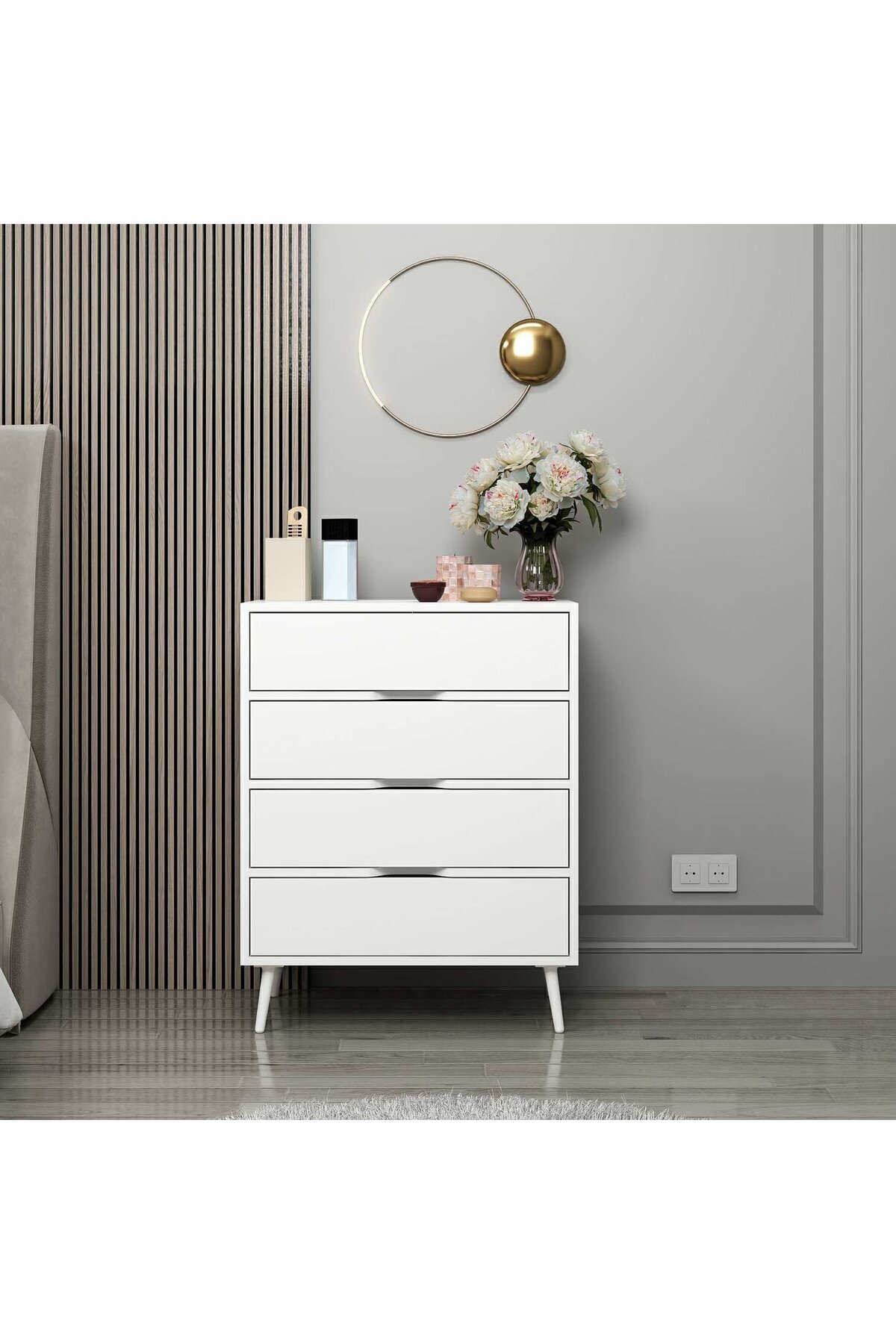 Elina Ayaklı 4 Çekmeceli Şifonyer - Beyaz/Beyaz