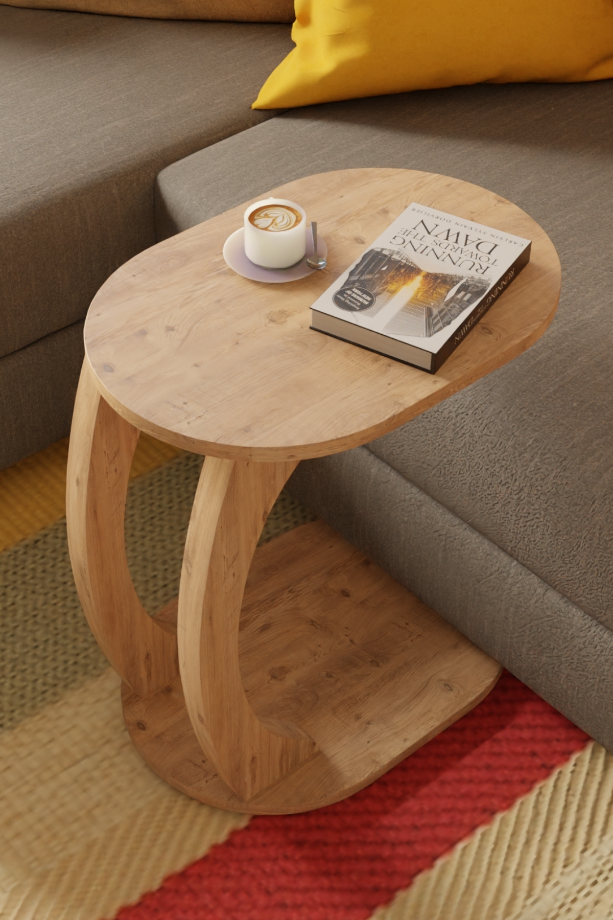 Oval Traverten C Sehpa Modern,Tekerlekli Suntalam Yan Sehpa (Salon, Ofis, Yatak Odası)
