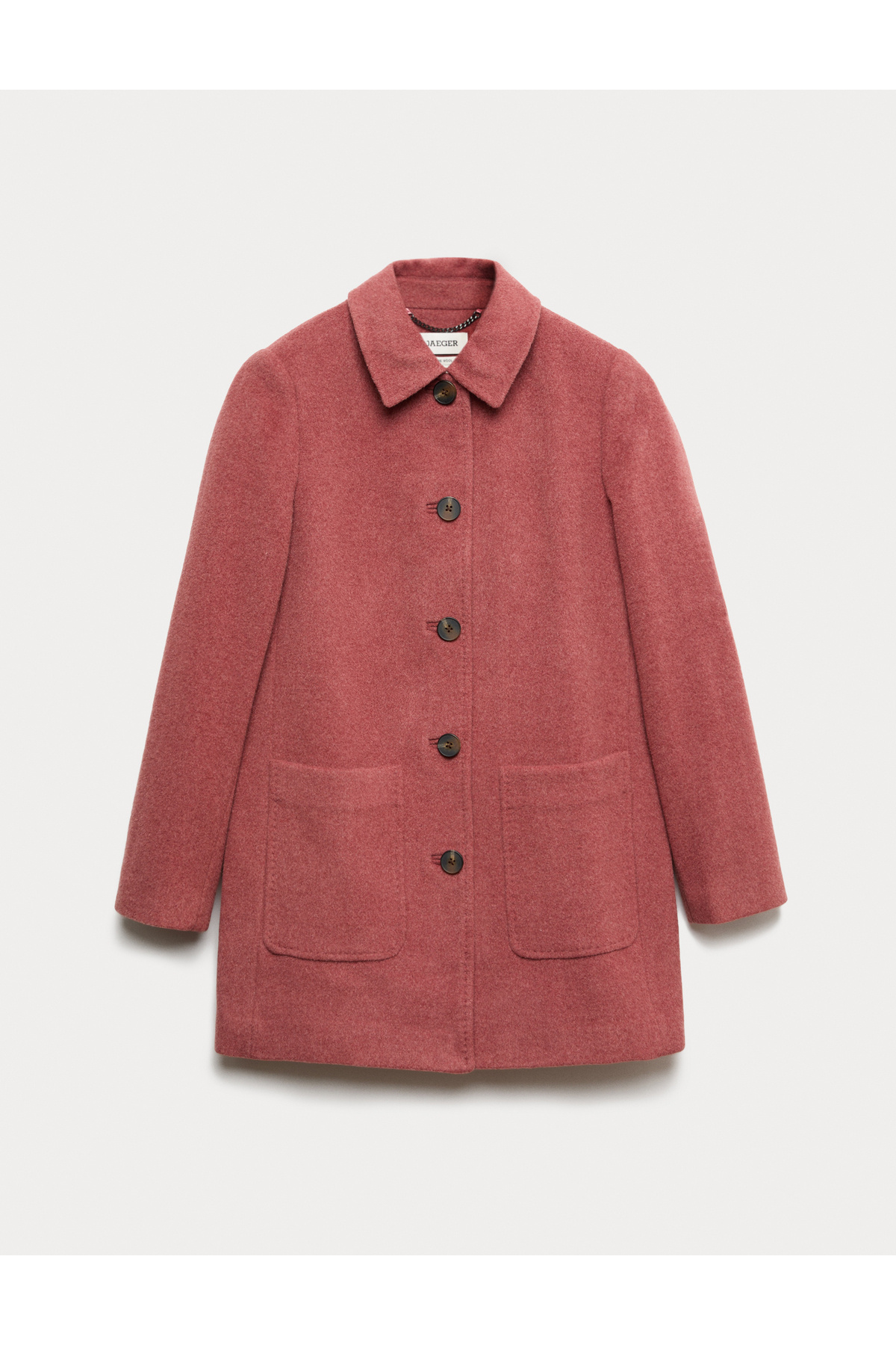 Saf Yünlü Düğmeli Kısa Palto