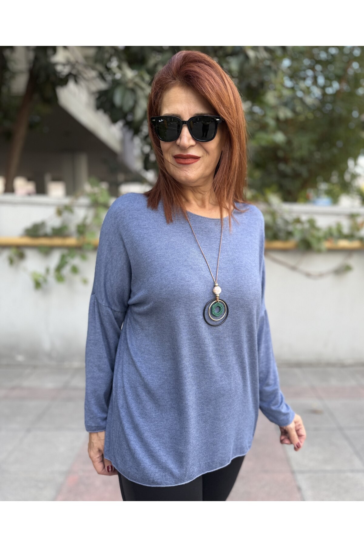 Yumuşak Doku Kolyeli İtalyan Triko İndigo Mavi
