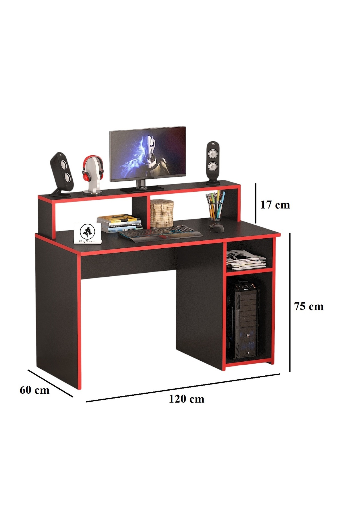*Oyuncu Masası Gamer Model Çalışma Masası Siyah-Kırmızı Model *Ürün Ölçüleri: Genişlik: 119cm X Yükseklik:74 cm (Ekran Yükseltici:21 cm) Toplam Yükseklik 95 cm X Derinlik:59 cm *Masa 18mm SuntaLam malzemeden üretilmektedir.