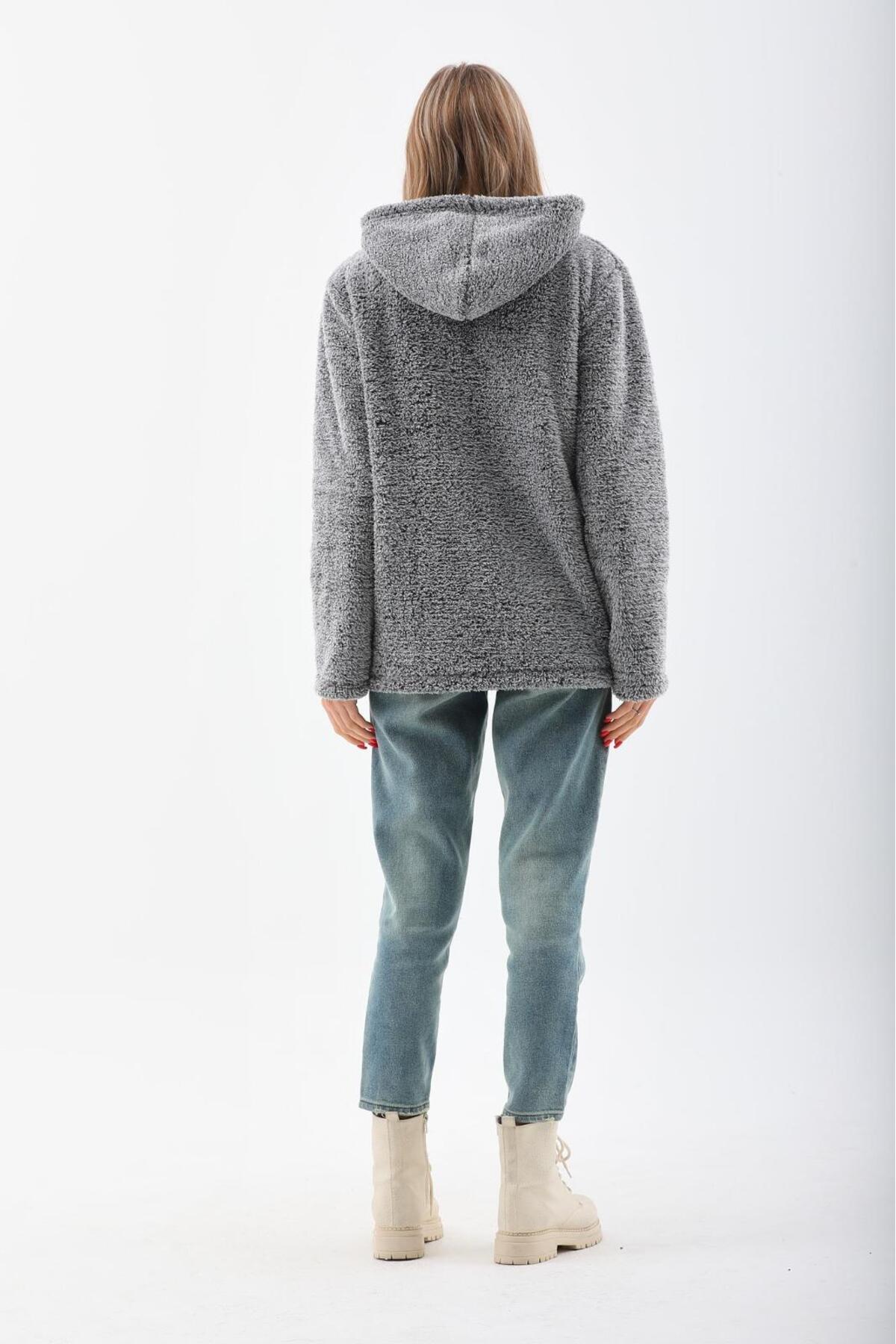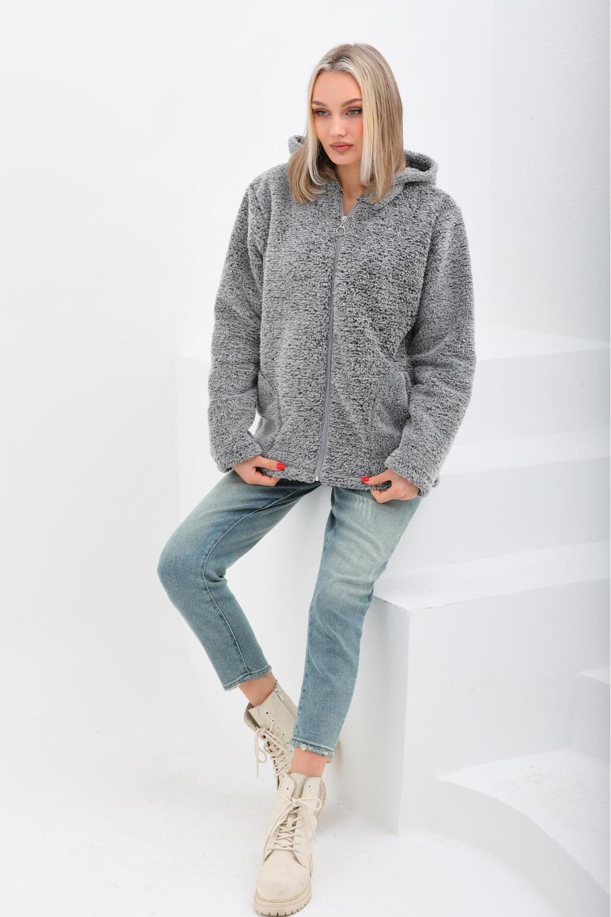 KADIN KAPÜŞONLU FERMUARLI WELSOFT YUMUŞAK KUMAŞ GRİ POLAR