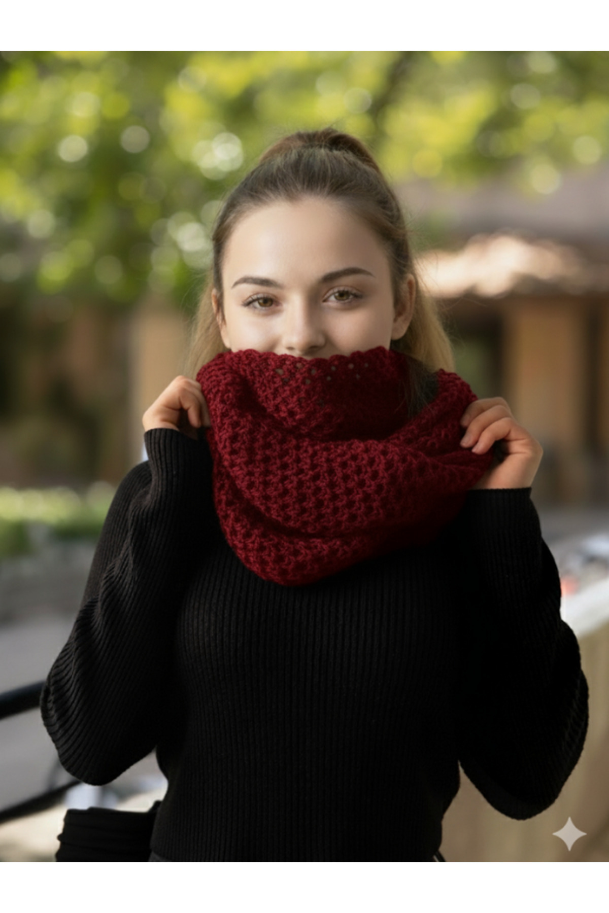 - Dokulu deseniyle şıklığı ve zarafeti boynunuza taşıyan ince örgü boyunluk.