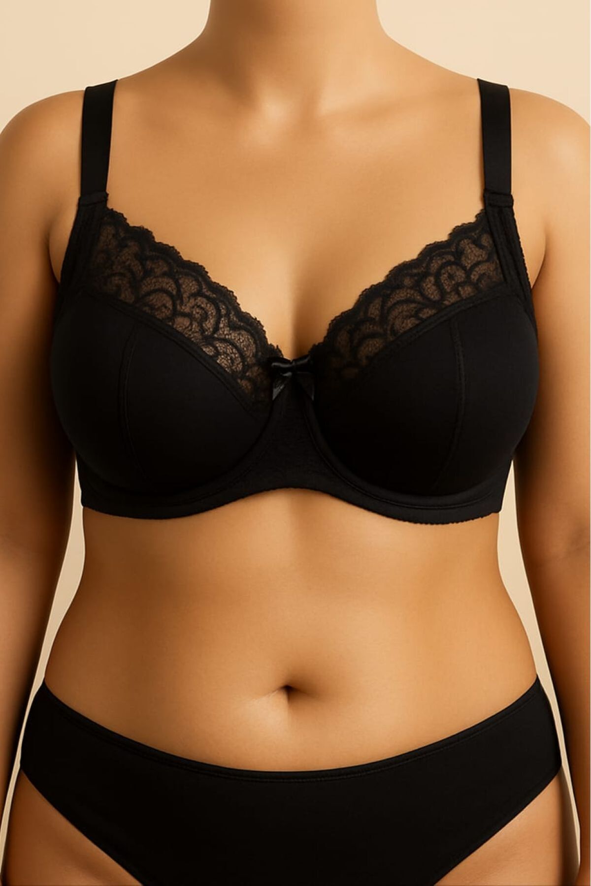 Gün boyu konfor ve güvenli kavrama sağlayan Büyük Beden C Kap Balenli Dantelli Toparlayıcı Sütyen, tam kap kalıbı ile göğsü nazikçe sarar, yanları toparlayarak pürüzsüz bir silüet oluşturur.