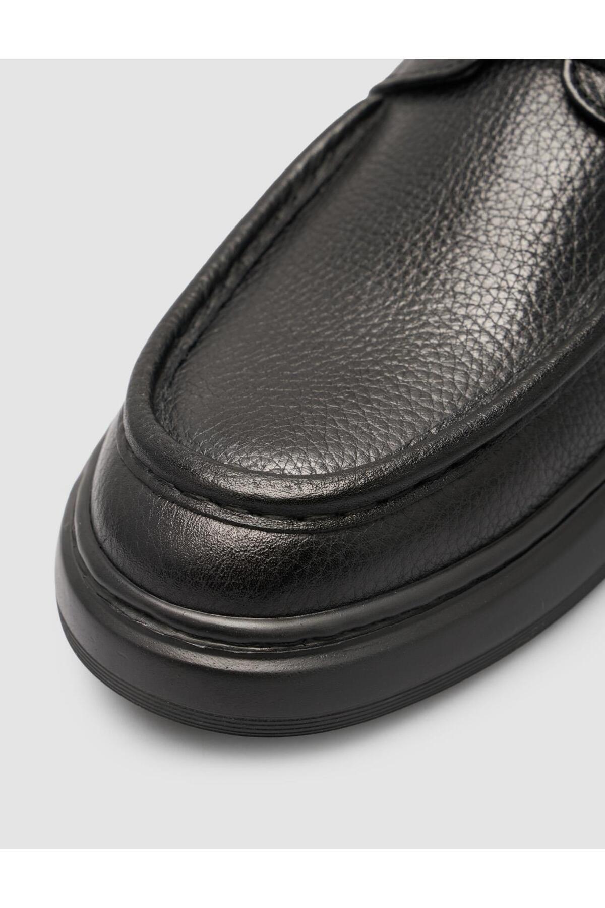 %100 Hakki Deri Bağçıklı Siyah Erkek Günlük Ayakkabı