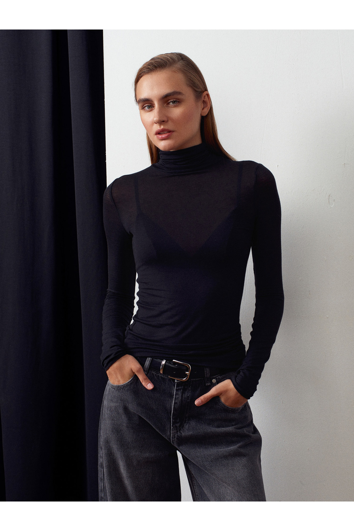 Ürün İçeriği : %80 Micro Modal %10 Kaşmir %10 Elastan Mankenin Ölçüleri : Boy : 179 Göğüs : 81 Bel : 60 Kalça : 92 Numune Bedeni : 36/Standart Ürün Ölçüleri : Boy : 65 cm En : 33 cm Kol : 71 cm