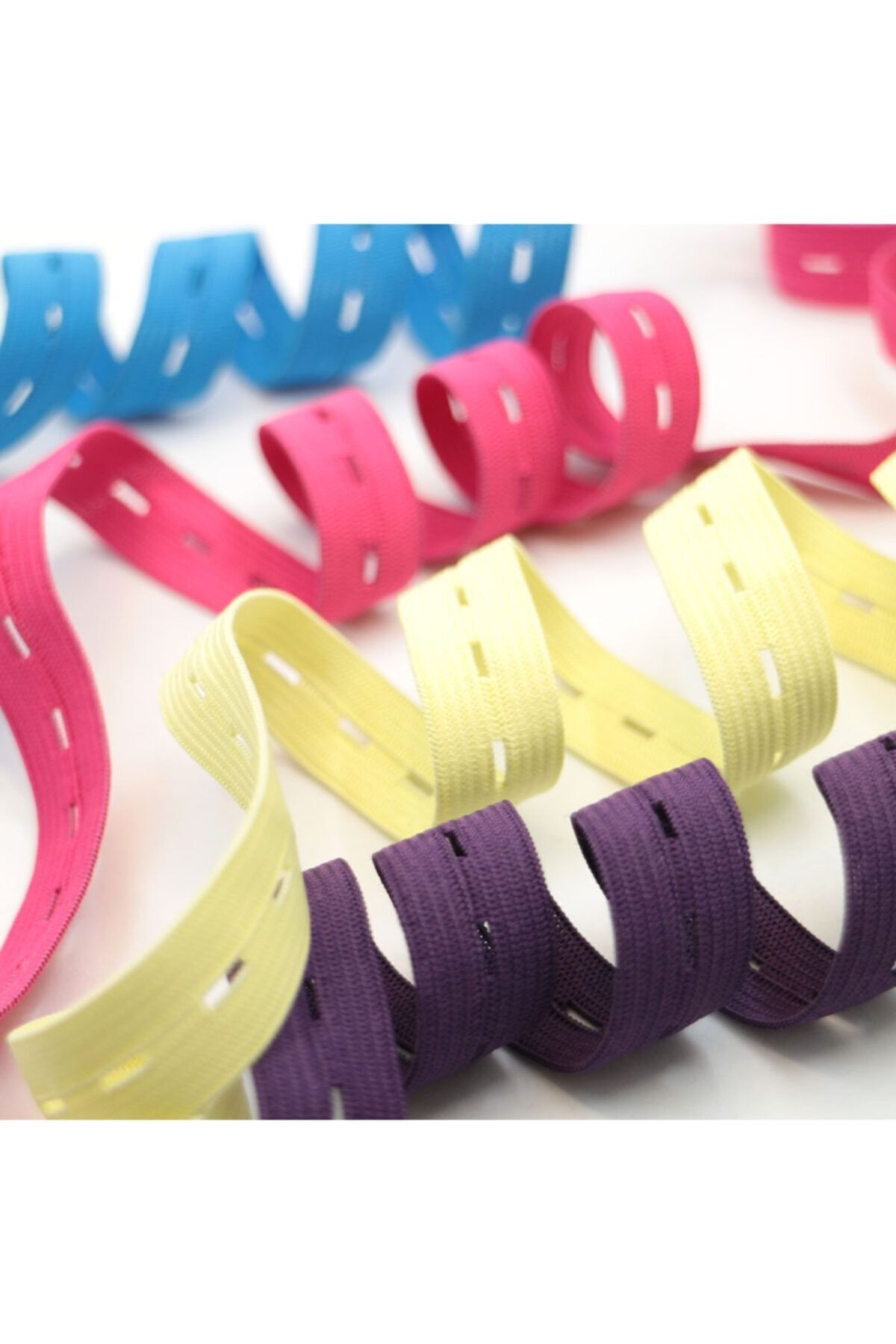 Lastik, düğmeler için delikli formdadır.