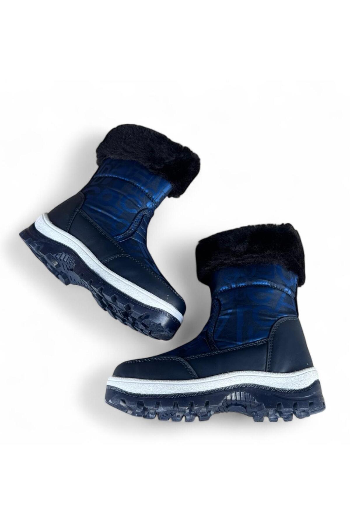 çocuk lacivert içi kürklü fermuarlı su geçirmez yağmur kar botu çizme