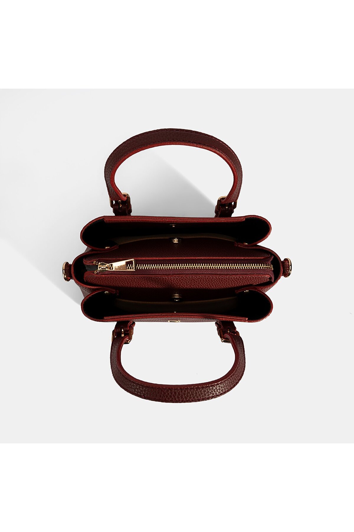 Bu şık çanta, fermuarlı kapama sistemiyle güvenli ve pratik bir kullanım sunar.