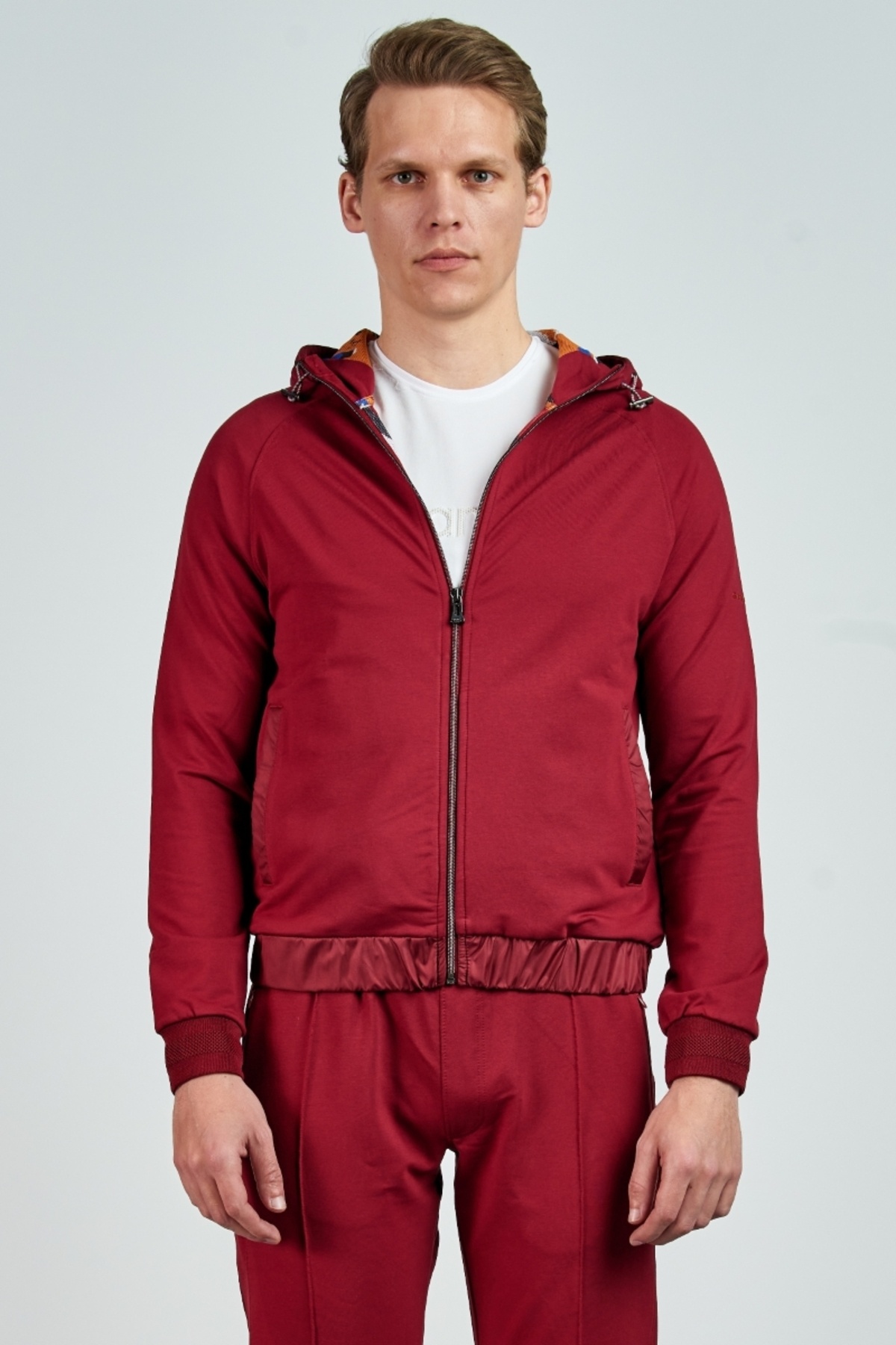 Kapüşon yaka, fermuar kapatmalı, baskı ve garni detaylı, iki adet dış cepli.