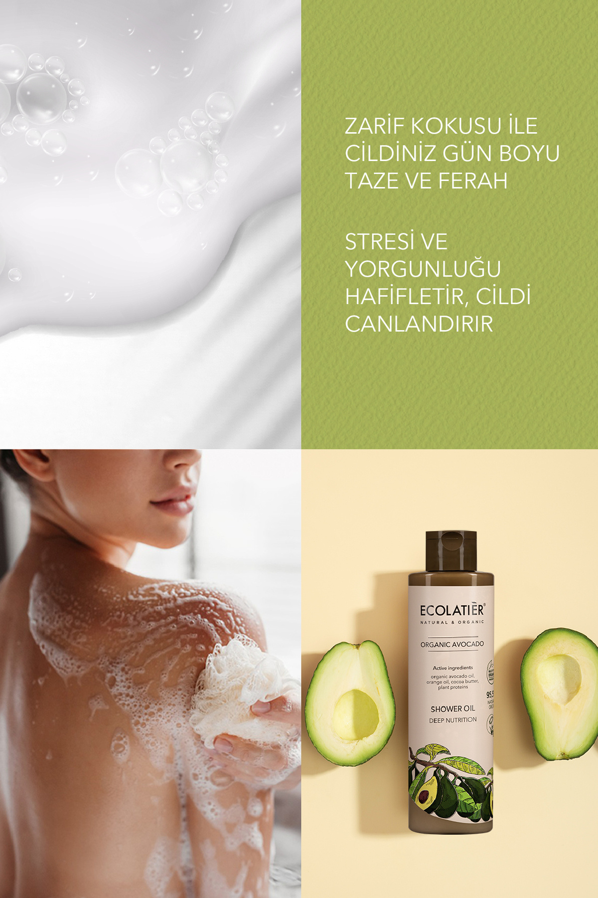 Duş Yağı Organic Avocado Ecolatier – % 95,5 Doğal Vücut Şampuanı, Yağı İçeren Nemlendirici Duş Jeli Ecolatier duş yağı, cildi nazikçe temizlerken aynı zamanda yoğun vücut nemlendirici bakım sağlar.