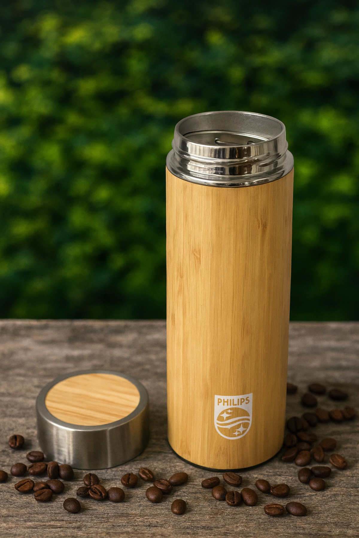 Doğadan ilham alan bambu tasarımıyla hem estetik hem de işlevsel bu termos, kahve severlerin ve doğa dostu yaşam tarzını benimseyenlerin favorisi olacak.