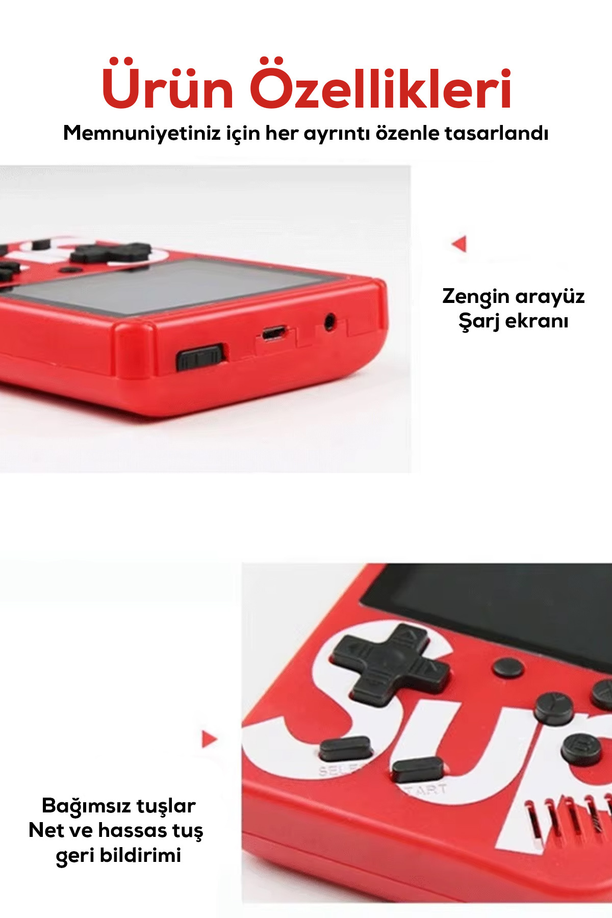 SUP 400 Oyunlu Taşınabilir Mini Atari El Konsolu Çift Kollu Şarjlı Retro Oyun Makinesi