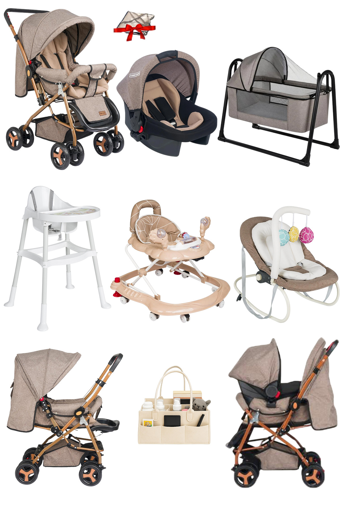 8 Parça Ekonomik Bebek Çeyiz Seti BebekArabası Puset AnaKucağı Beşik MamaSandalyesi Yürüteç Organize