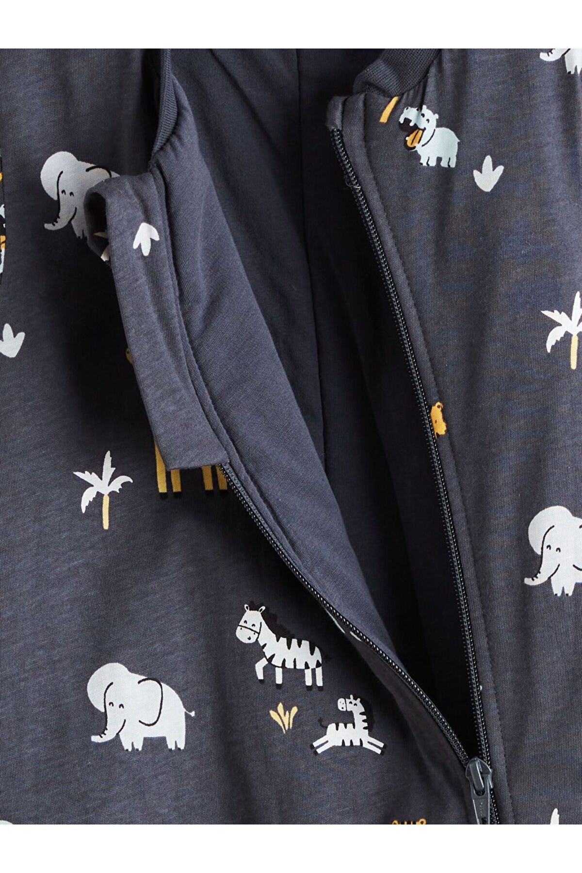 Ürün AçıklamasıHayvan desenli, bisiklet yaka ve uzun kollu erkek bebek tulum, asimetrik fermuar kapamalıdır.