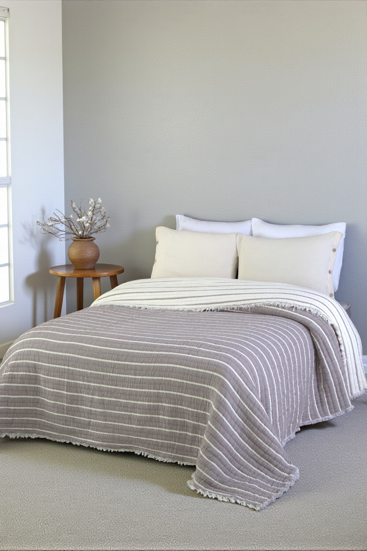- Çift taraflı kullanım özelliği ile farklı desen seçenekleri sunar, yatak odanızın dekorasyonuna kolayca uyum sağlar.