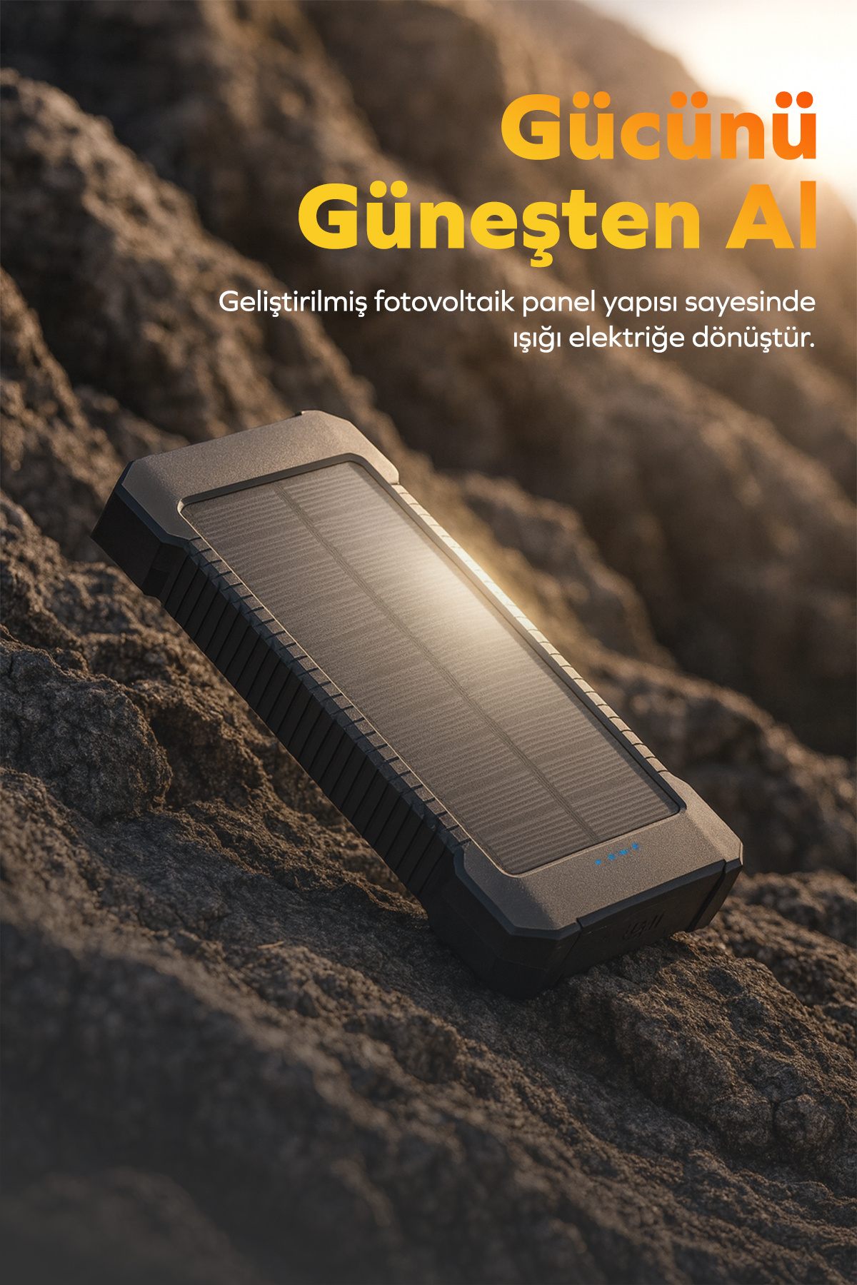 Solar powerbank’i şarj etmenin birincil yöntemi USB üzerinden olmalıdır.