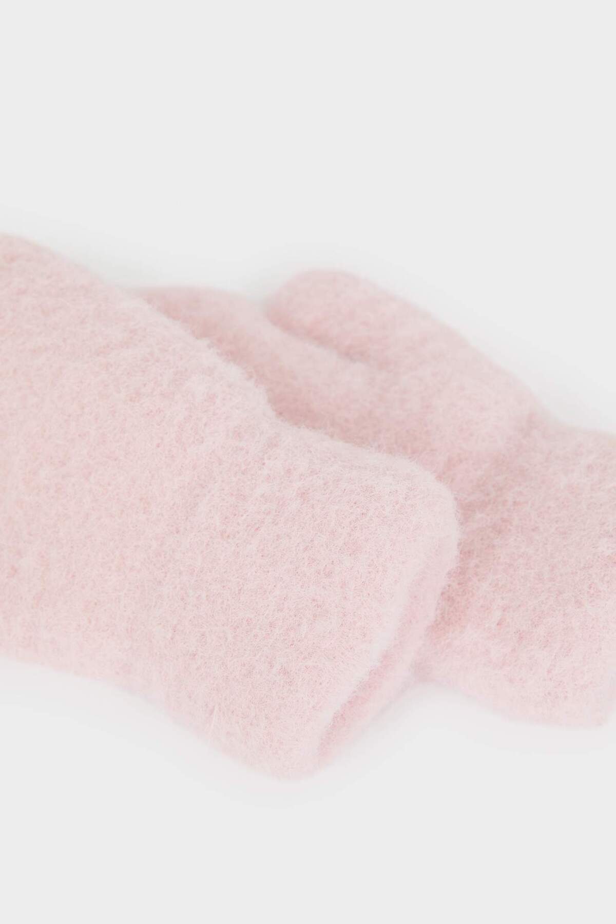 İçi yumuşak suni yünle kaplanmış bu kız bebek penye eldiven, soğuk havalarda minik elleri sıcak ve rahat tutar.