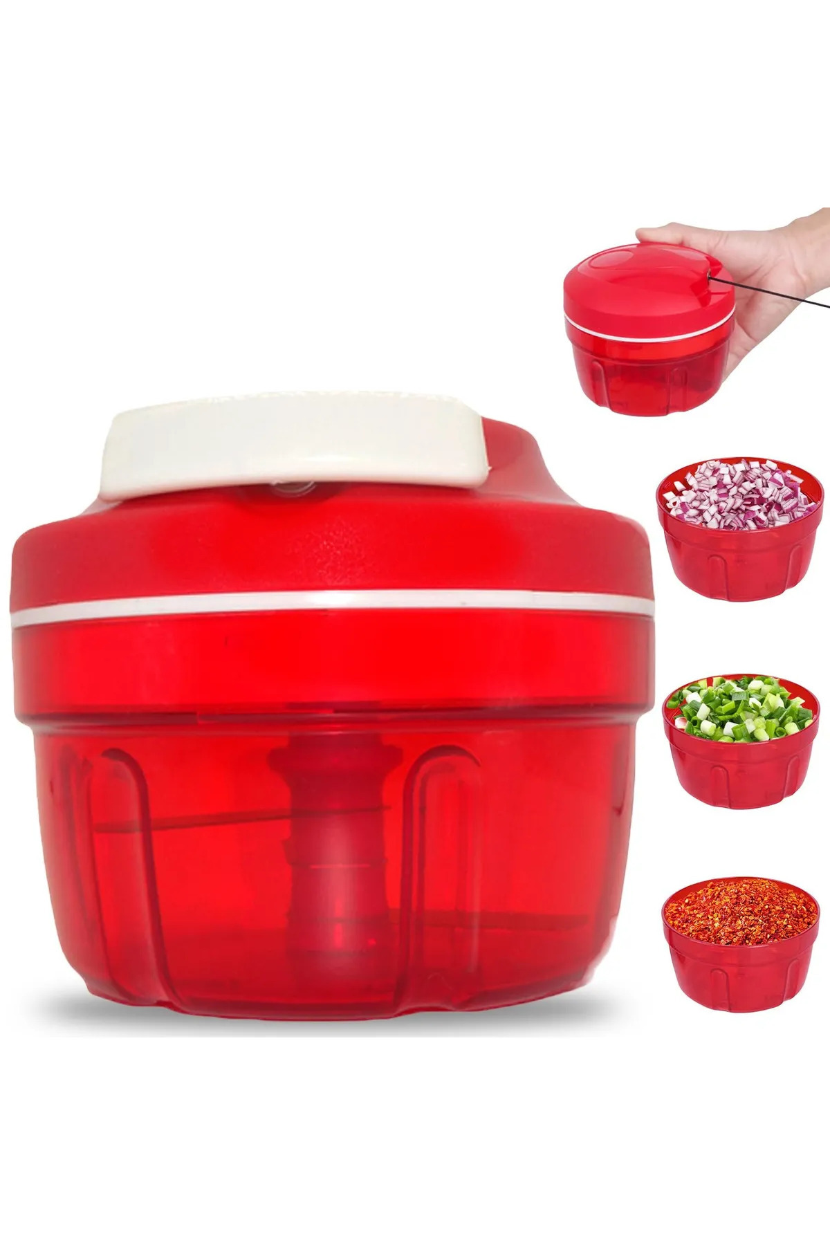 İpli çekme mekanizması ile sebze, meyve ve soğanlarınızı kolayca doğrayın.