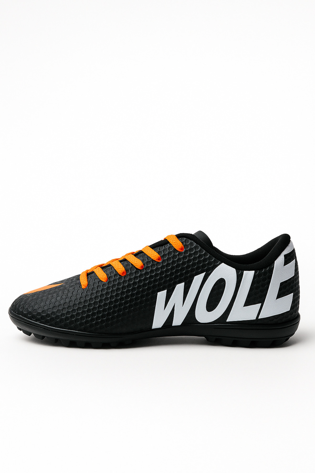 Sahada hız, kontrol ve görünürlük sunan siyah-turuncu turf kramponu.