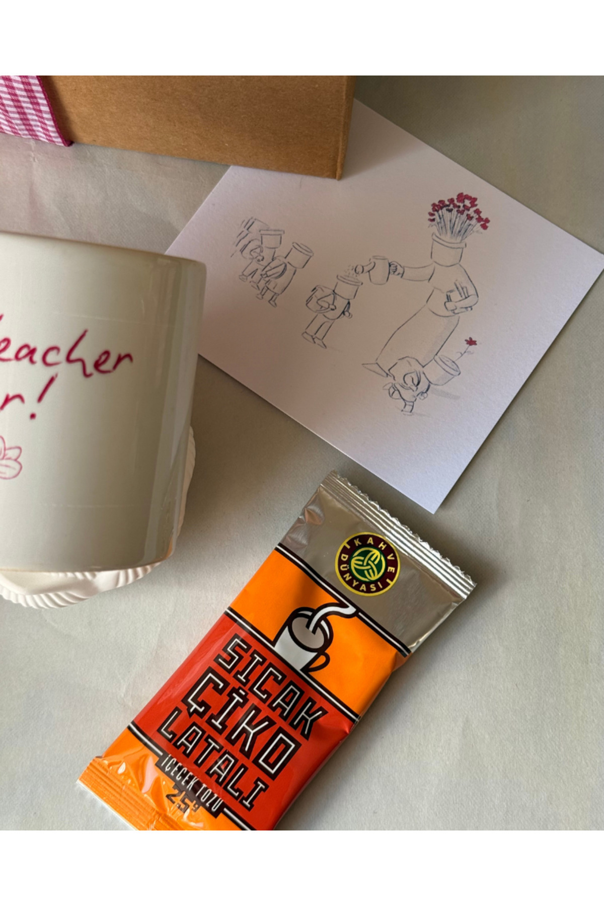 Öğretmene Hediye Kutusu | Best Teacher Ever Kupa Ayıcık Sıcak Çikolata ve Hediye Kartı