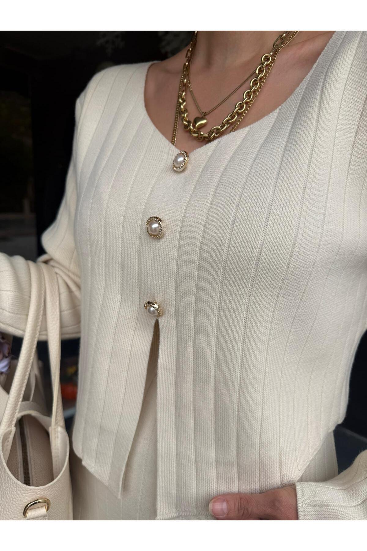 Premium kalitesiyle dikkat çeken bu elit triko takım, hem zarafeti hem de konforu bir arada sunuyor.