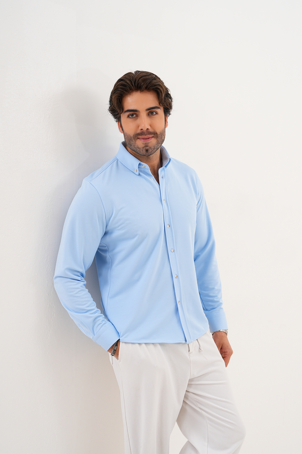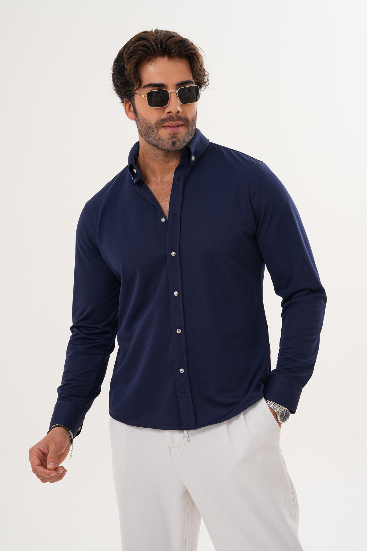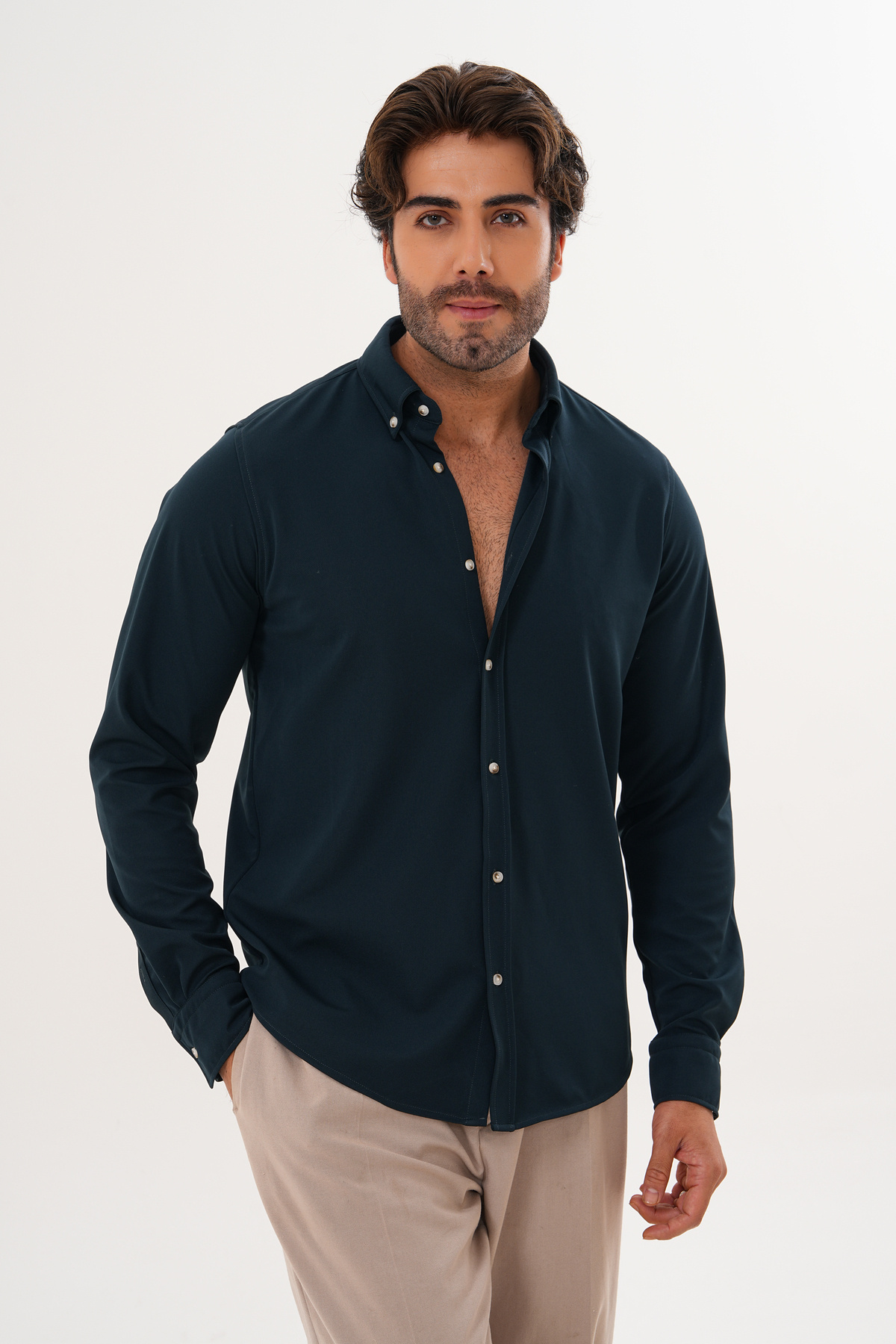 - Mevsimlik kullanım için ideal, örme petek kumaştan üretilmiş erkek gömlek.