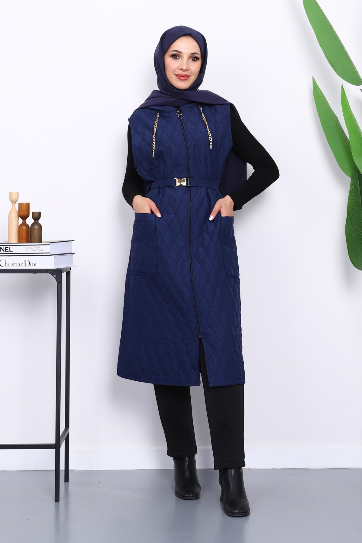 Taş Kapüşonlu Kemerli Kapitone Yelek
