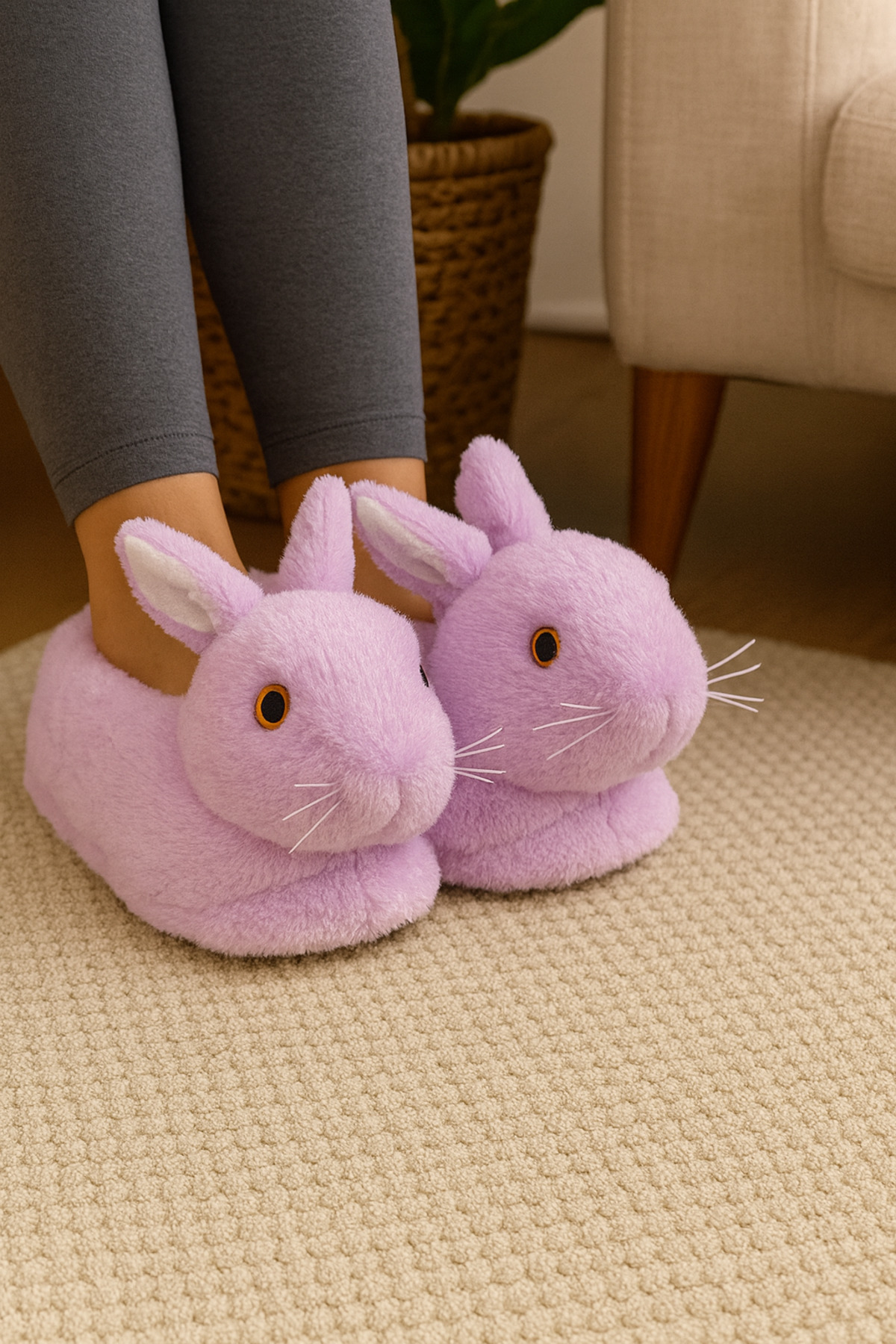 Öne Çıkan Özellikler: Unisex kullanım (Kadın & Erkek) Peluş, yumuşak ve sıcak tutan iç yüzey Kaymaz taban, sessiz yürüyüş Kışlık, ev içi konfor Sevimli tavşan figürlü tasarım Hediye olarak ideal (sevgiliye, eşe, arkadaşa) Kutu İçeriği: 1 çift tavşan şeklinde peluş panduf Bakım Talimatı: Elde yıkama tavsiye edilir.
