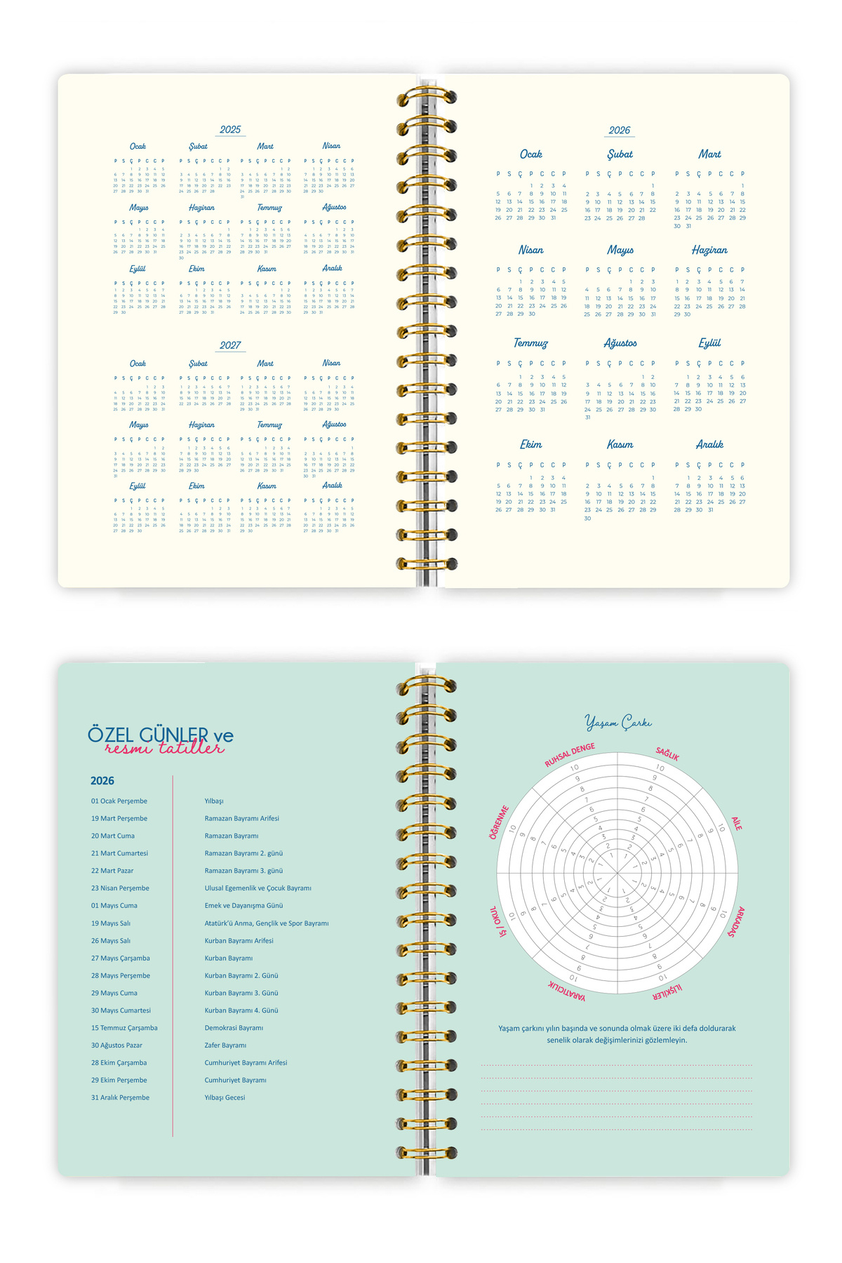 * Victoria's Journals Spiralli Sert Kapak Haftalık Motivasyon Ajandası 2026 *Lastikli * Cepli * Çıkartma Hediyeli * 12 Aylık- 1 Ocak 2026-31 Aralık 2026 * Ebat A5 * 96 Yaprak- 192 Sayfa * 100 Gram Kağıt * Yumuşak Dokunuşlu Kapak Yüzeyi * İçindekiler * 2025-2026-2027 Yıllık Takvim * 2026 Resmi Tatil Günleri * 2026 Özel Günler * Yıllık Hedefler * 2026 Yıllık Plan *2026 Aylık Plan * Yaşam Çarkı * İçimden gelenler * My Bucket List * Vizyon Panom .