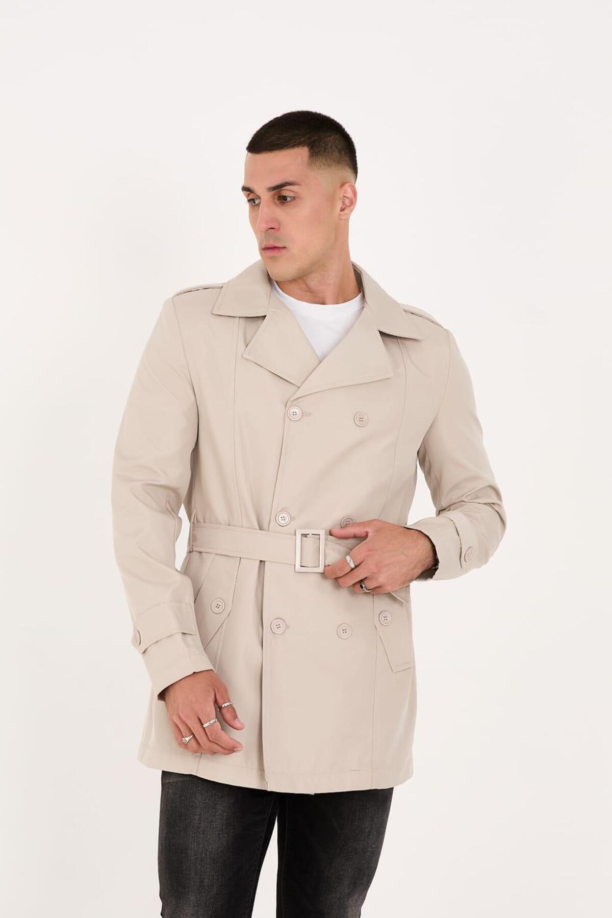 Erkek Düğmeli Mevsimlik Trençkot