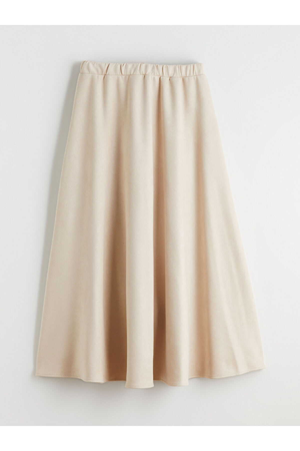 Ürün Kodu:W5MN63Z8-ZRW - BejBeli lastikli ve büzgülü olan kadın etek, desensiz kumaştan üretilmiştir ve kloş kesime sahiptir.