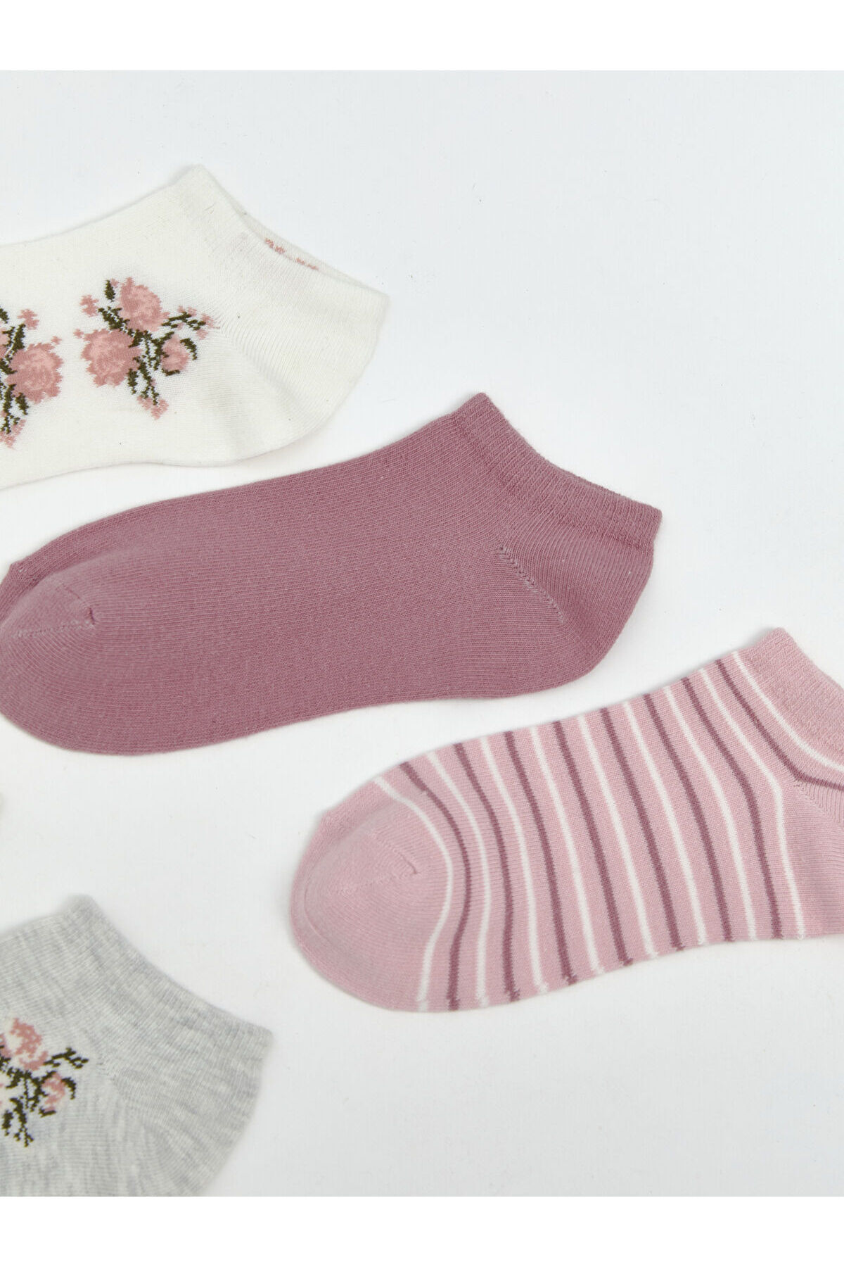 - Kadın patik çorap seti, 2 çift çiçekli, 1 çift çizgili ve 2 çift düz tasarıma sahip 5 çift patik çoraptan oluşur.