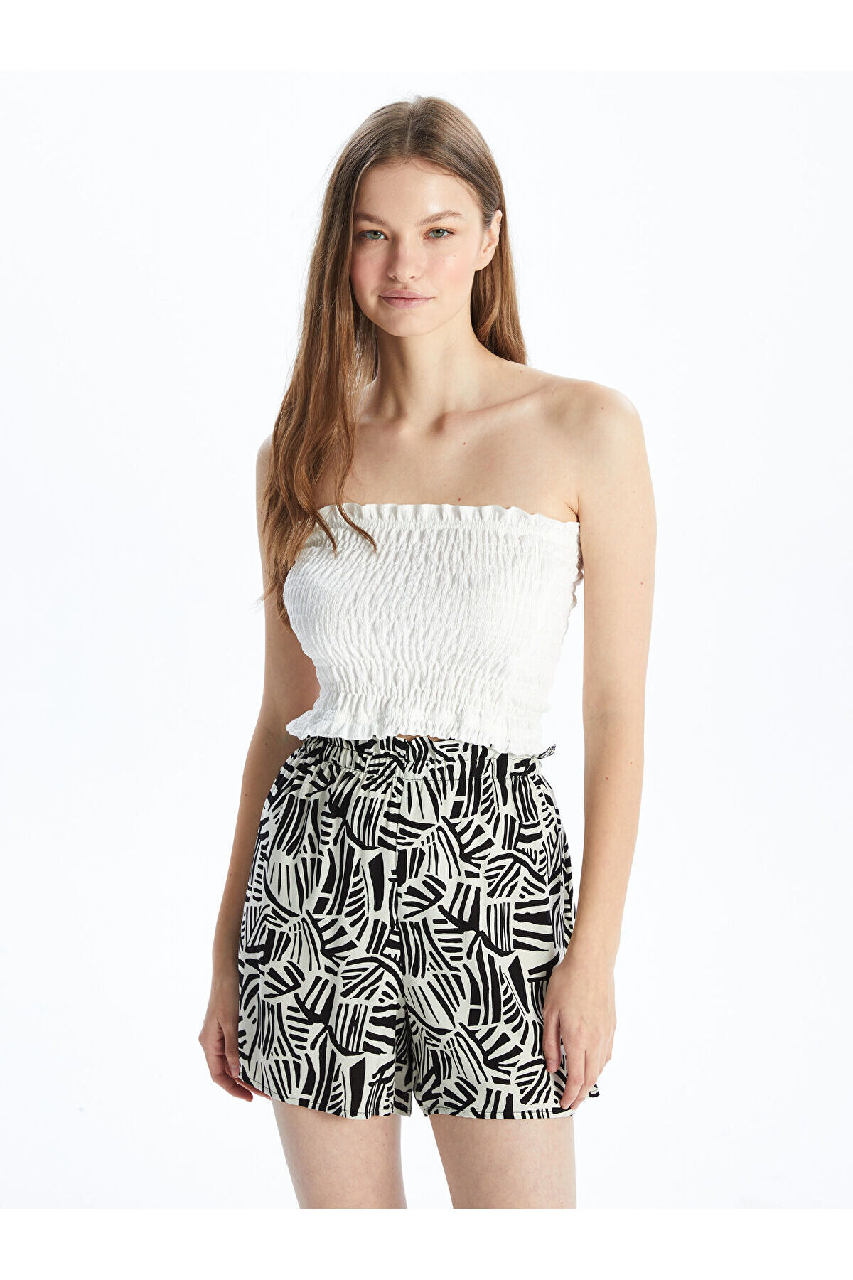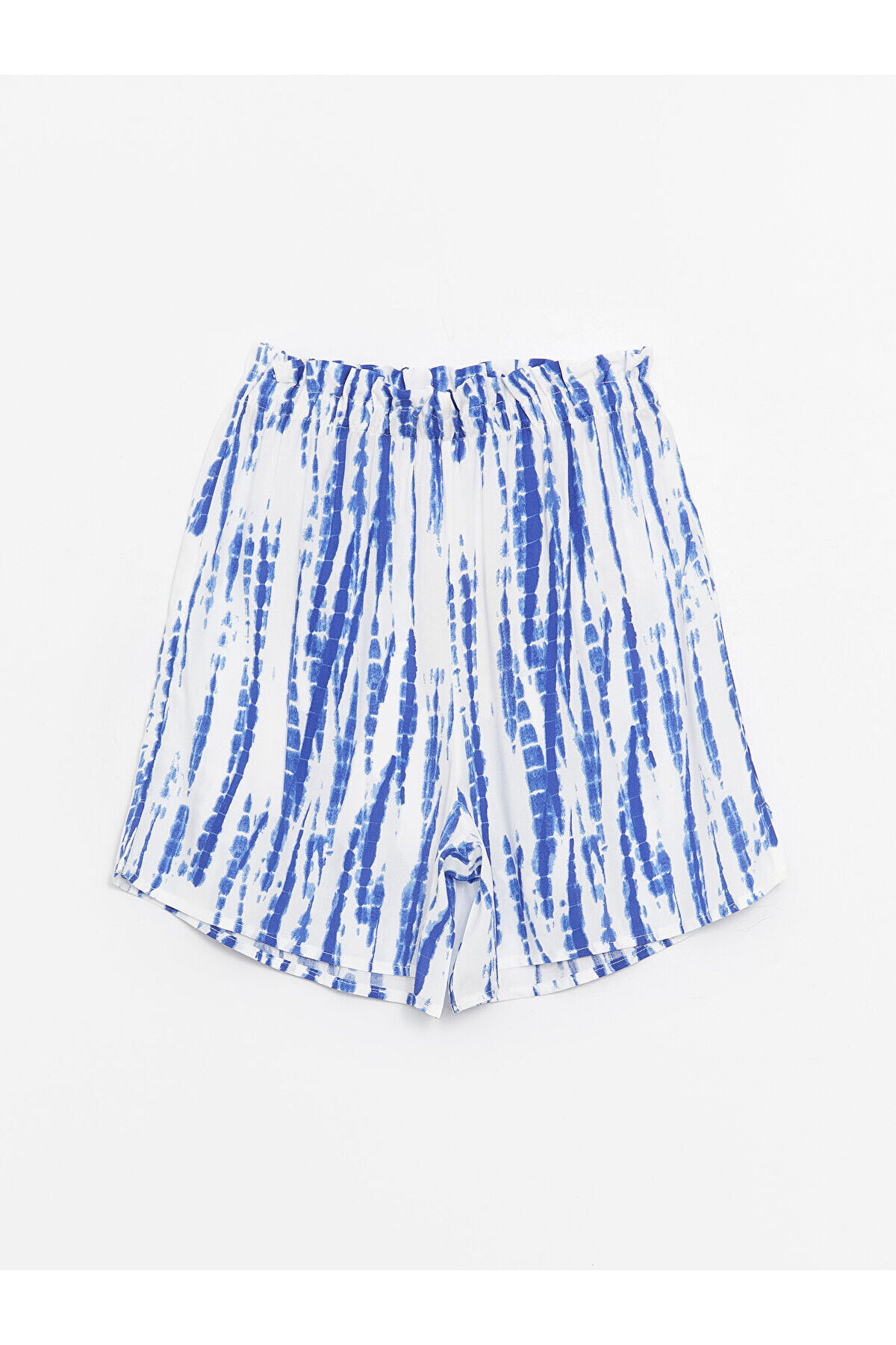 - Kadın yüzme şortu, batik desenli kumaştan üretilmiştir ve beli büzgülü lastik detayı ile tasarlanmıştır.