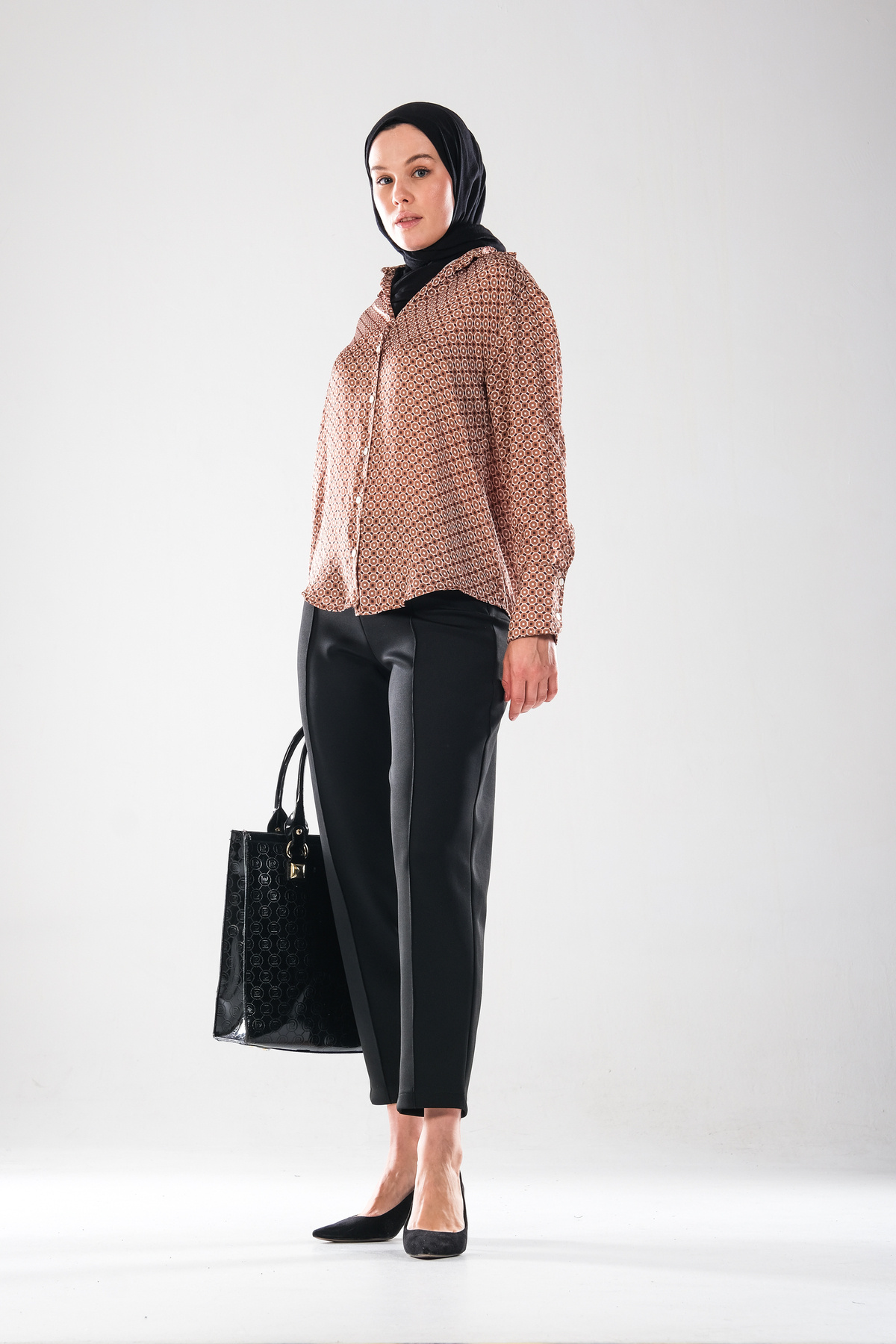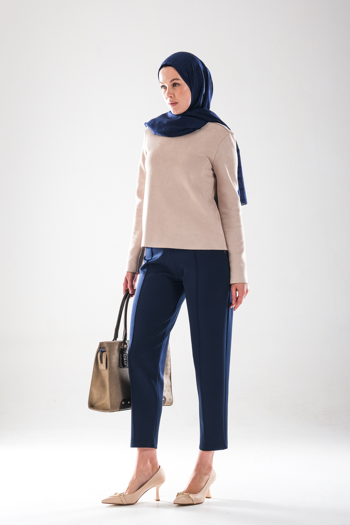 2293_Kadın Scuba Kumaş Yüksek Bel Nervür Detaylı Havuç Pantolon - Gizli Fermuarlı Şık Pantolon