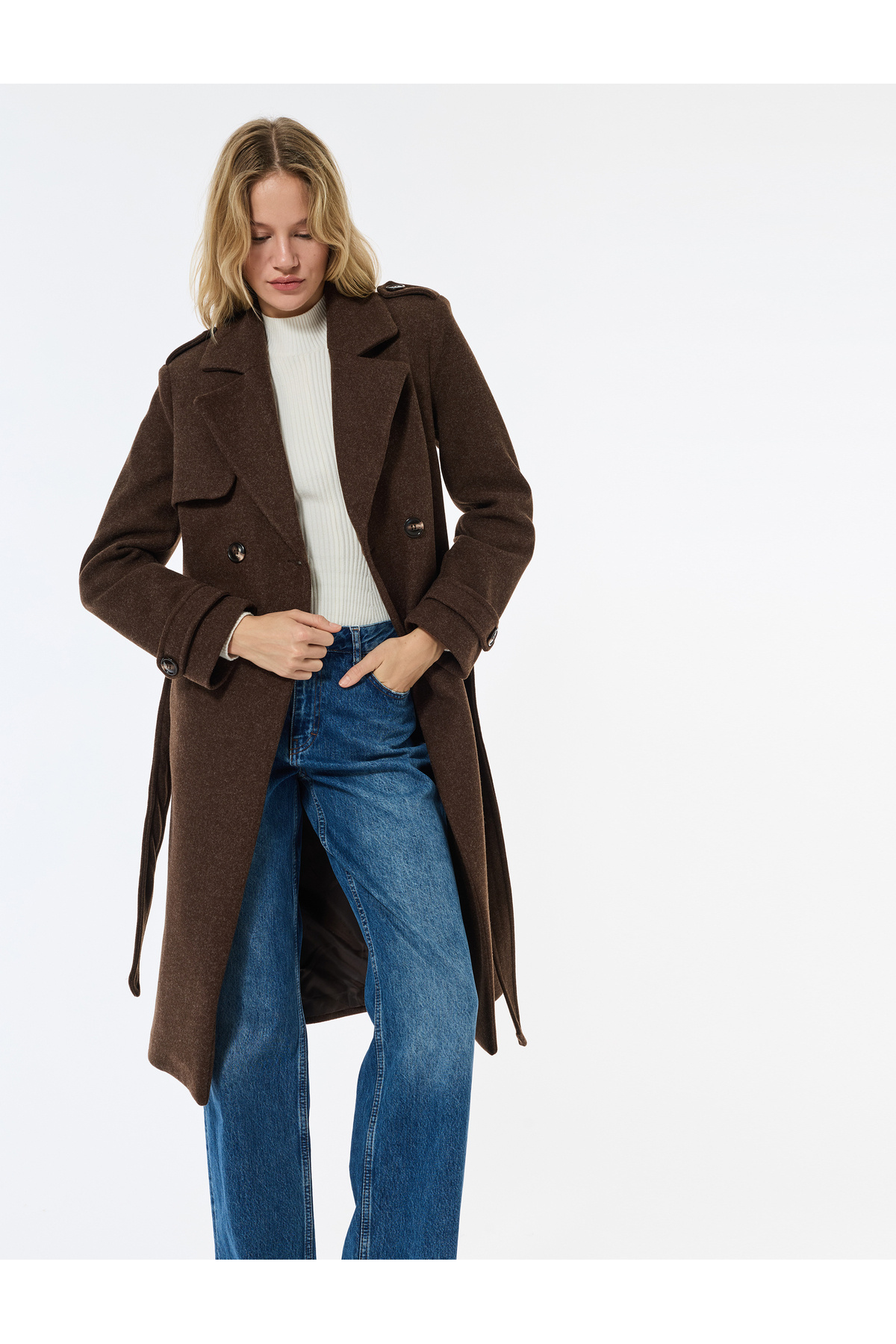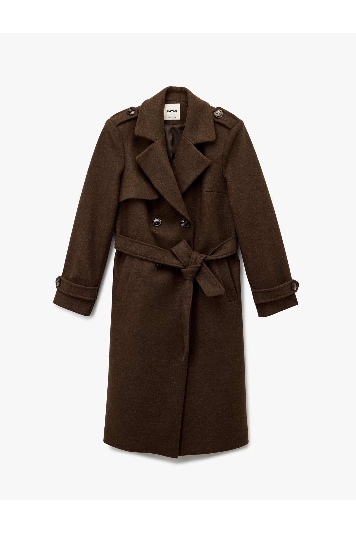 Trenç Kaban Kaşe Cepli Kemerli Kruvaze Uzun Kollu