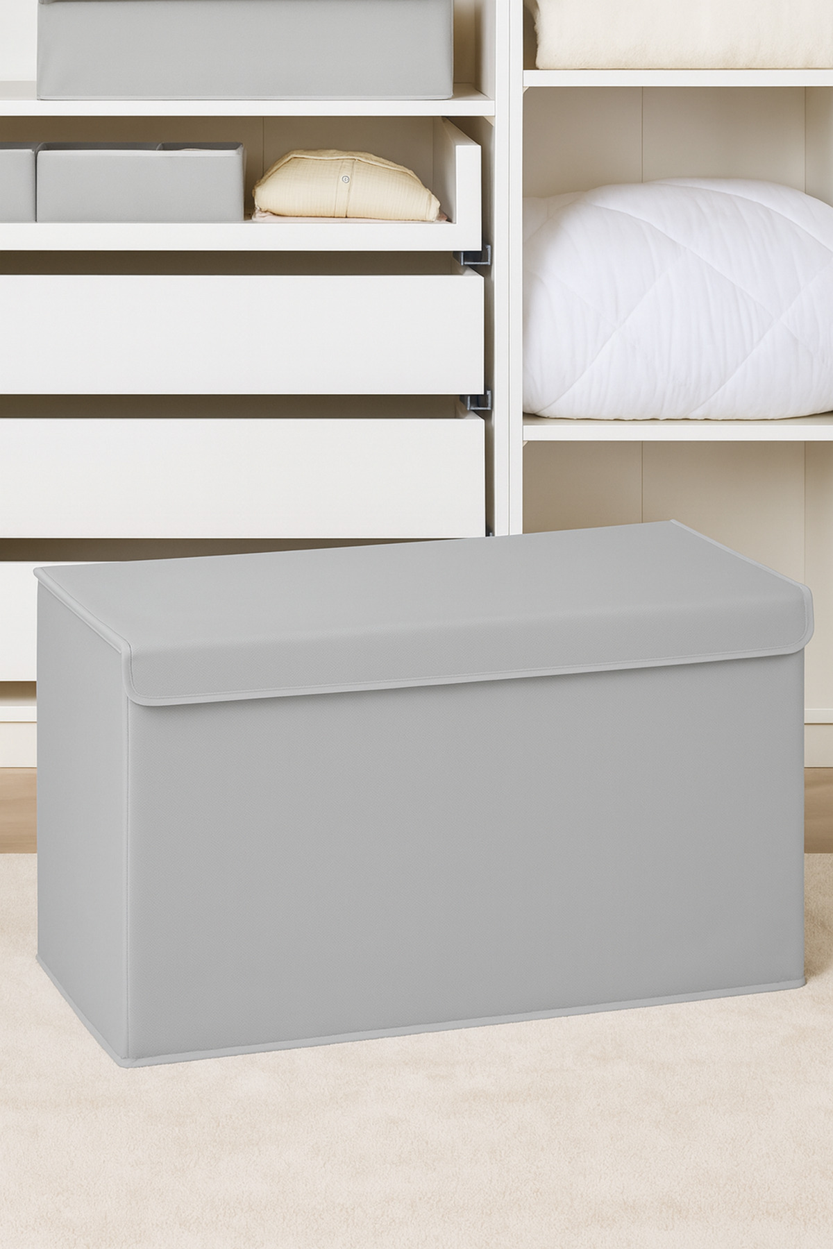 70x40x30 cm boyutlarındaki bu büyük boy saklama kutusu, kıyafet ve battaniye gibi eşyalarınızı düzenli bir şekilde saklamanızı sağlar.