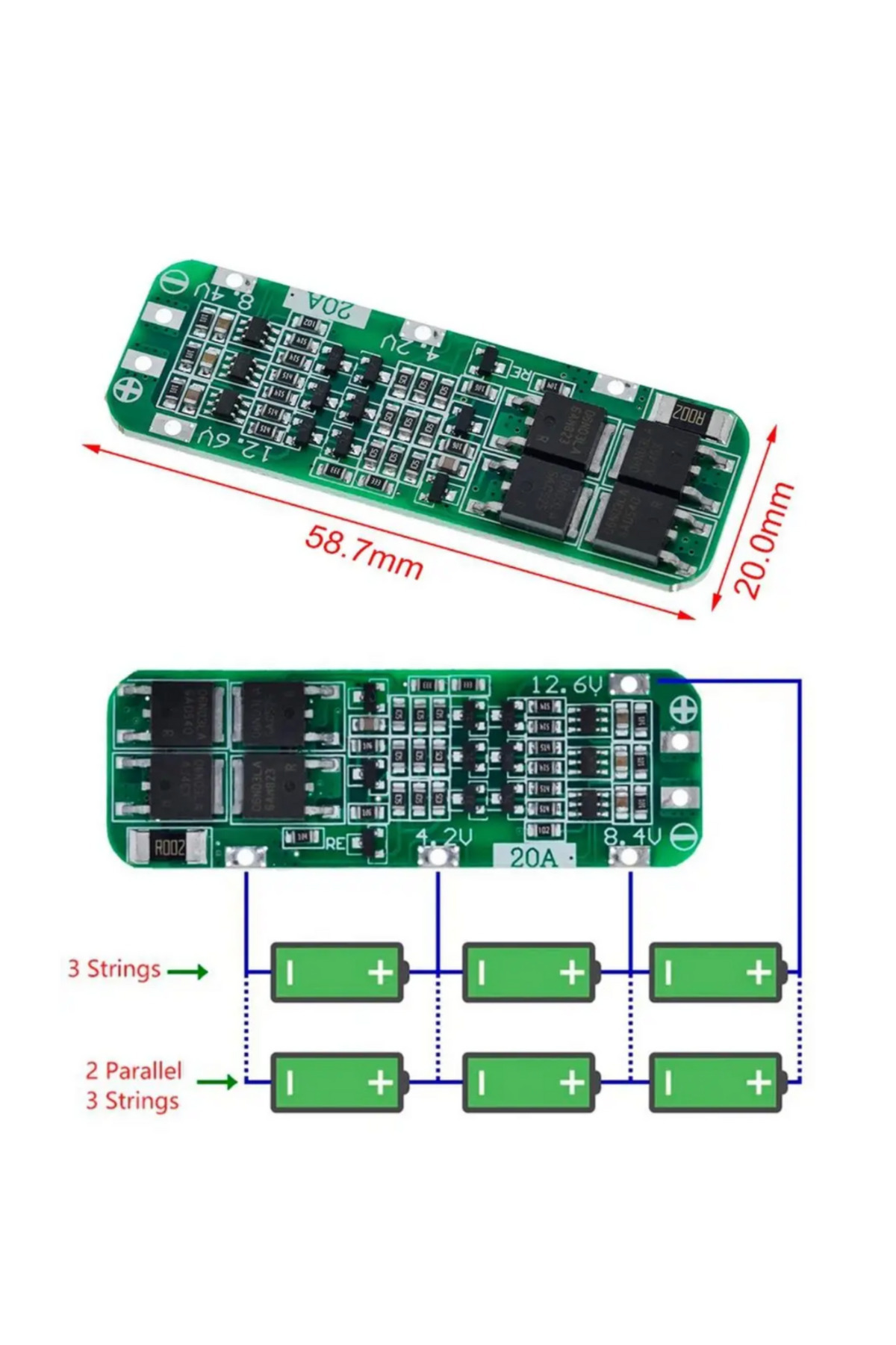 3S 20A LiPo 18650 Pil Şarj Koruma Devresi