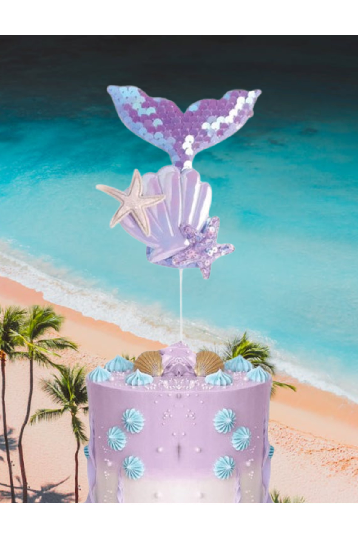 Deniz kızı temalı doğum günleri, yaz partileri veya baby shower kutlamaları için ideal olan bu süs, pastanızı sıradan olmaktan çıkarıp unutulmaz bir başyapıta dönüştürecektir.