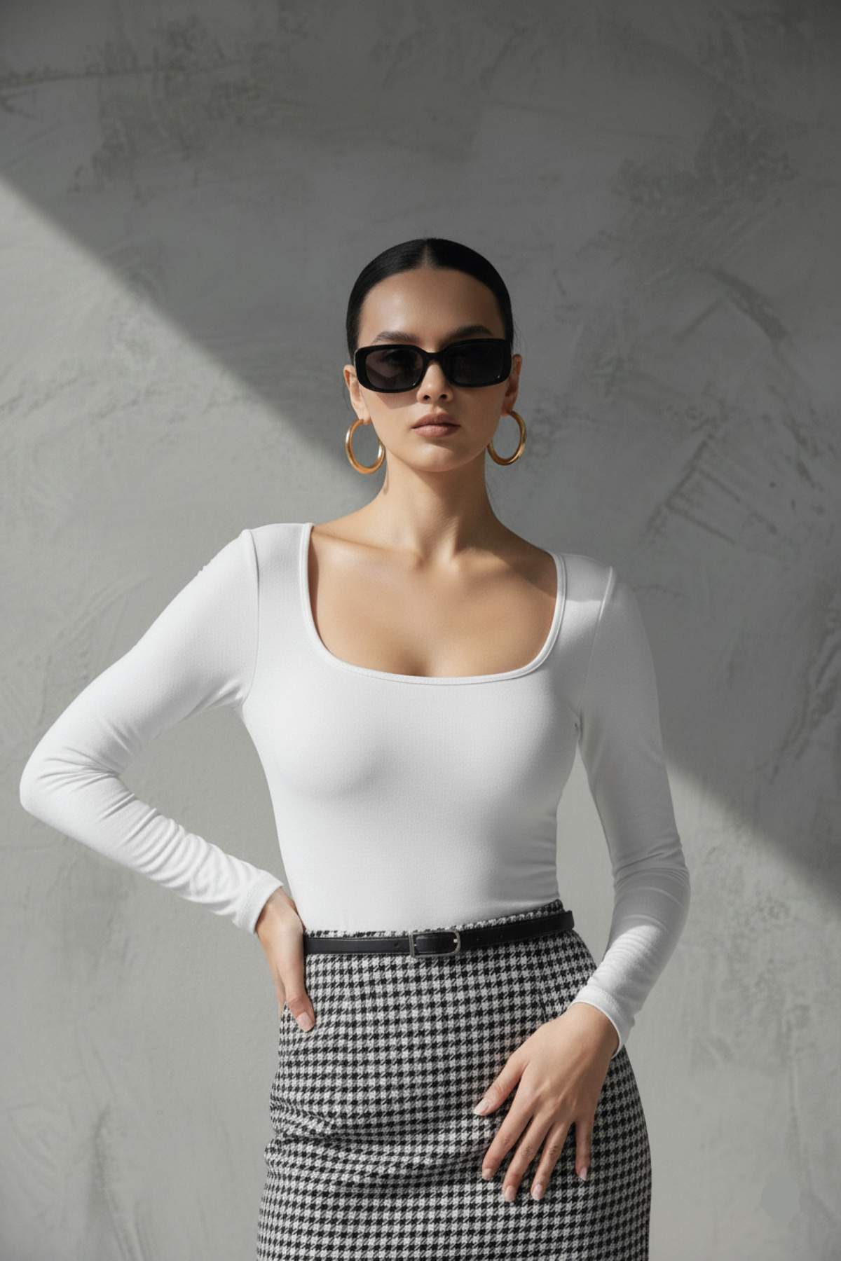 - Kare yaka tasarımı ile modern ve şık bir görünüm sağlar.
