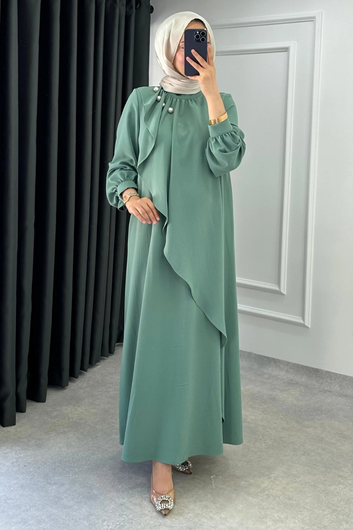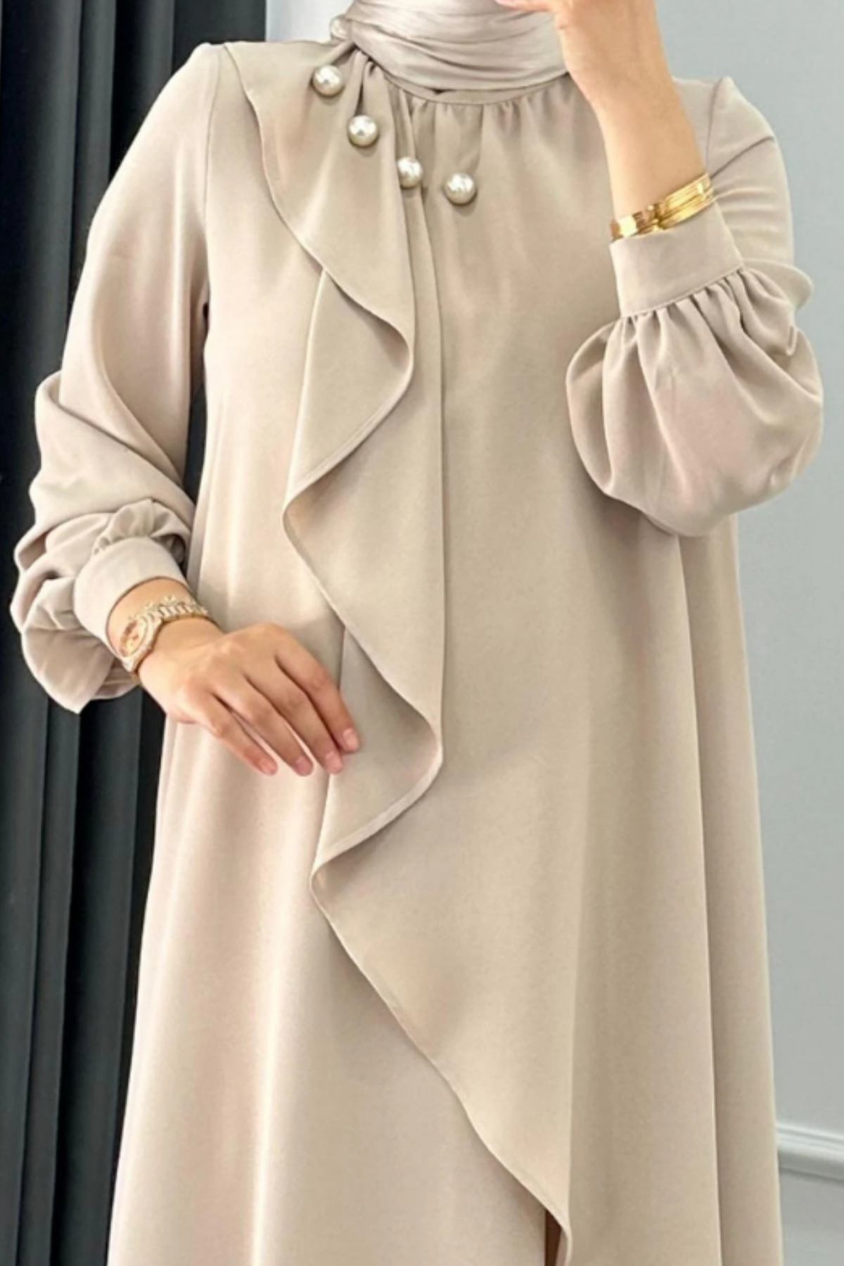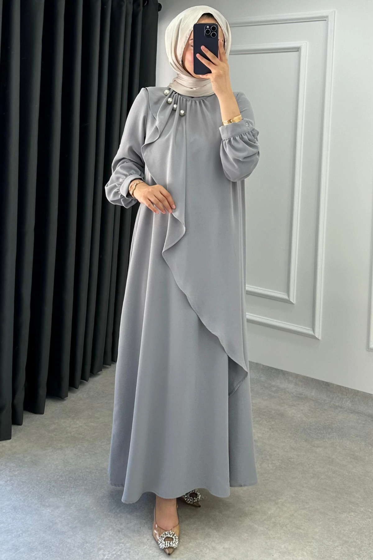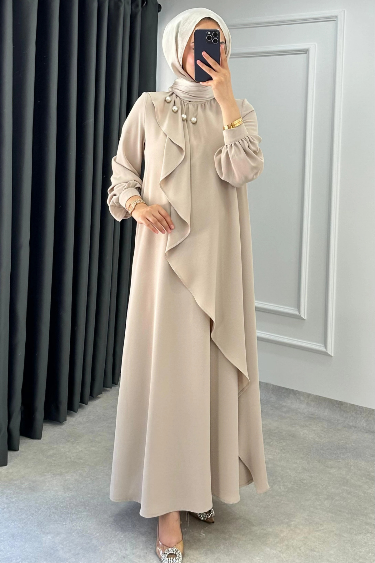 Kadın Krep Kumaş Yakası İnci Detaylı Levanur Tesettür Elbise