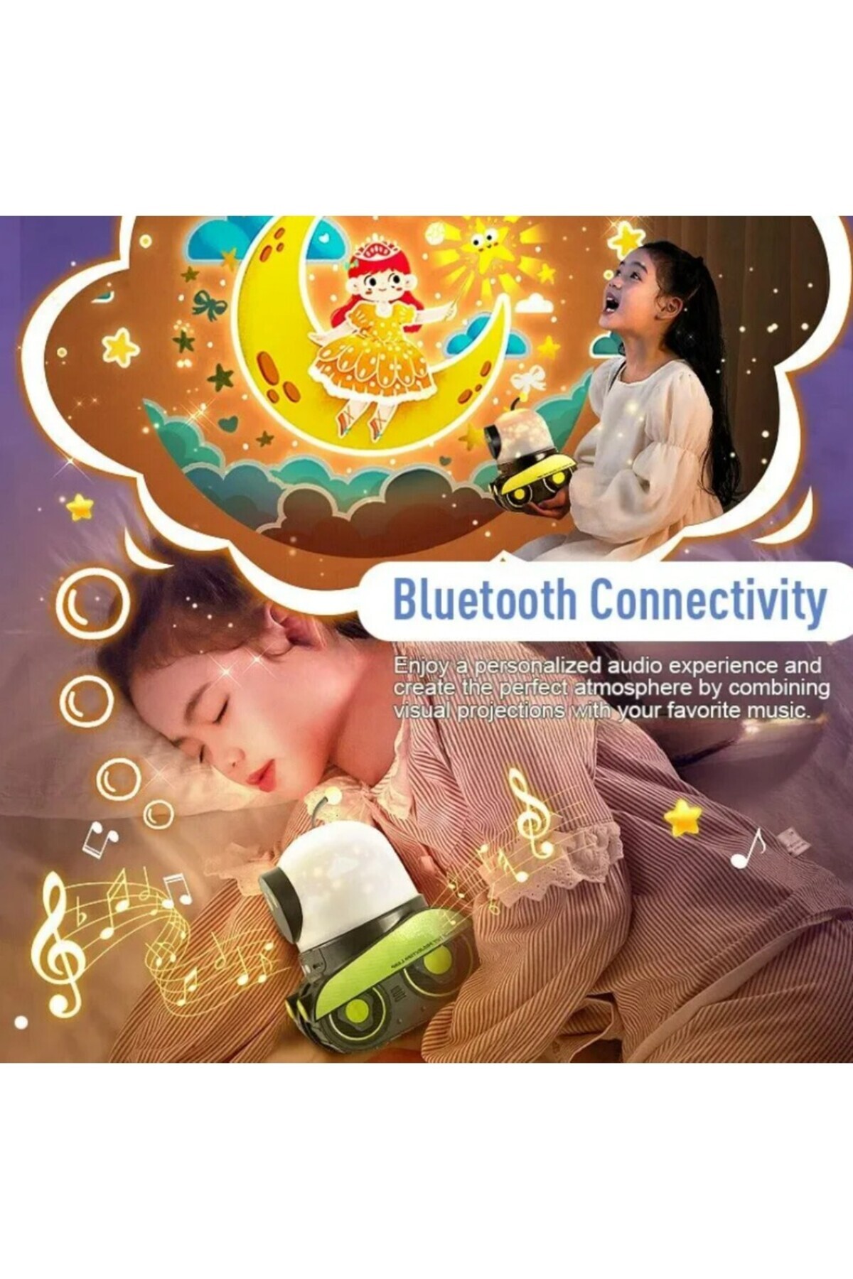 • Bluetooth müzik fonksiyonu :Bu çok yönlü lamba ayrıca çarpıcı projeksiyonların tadını çıkarırken en sevdiğiniz müziği çalmanıza izin veren bir bluetooth hoparlör içerir.