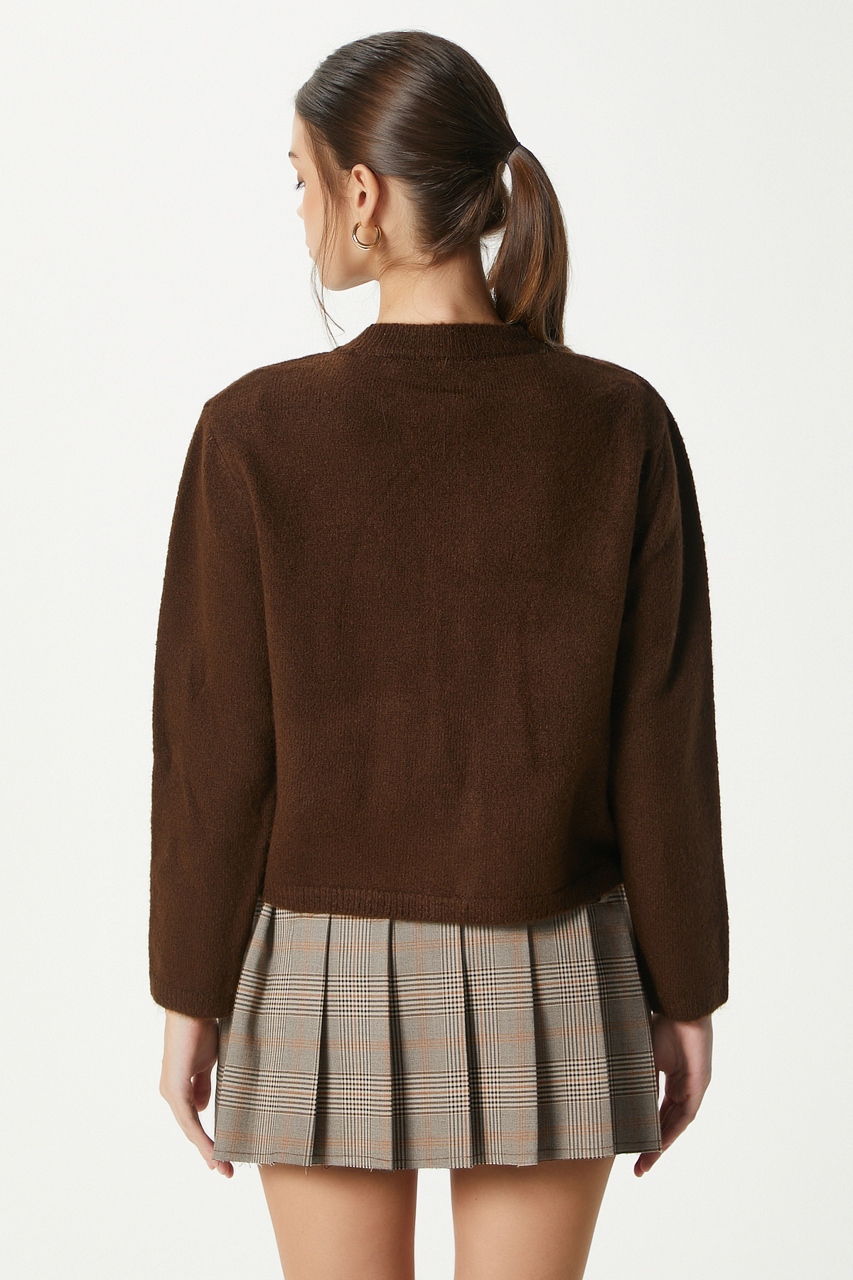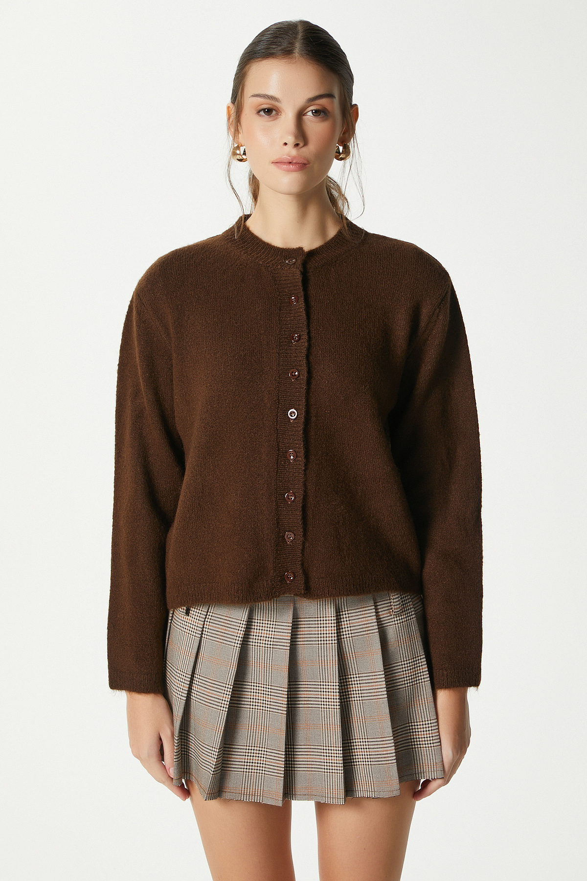 Kadın Nina Bisiklet Yaka Kahverengi Basic Hırka.