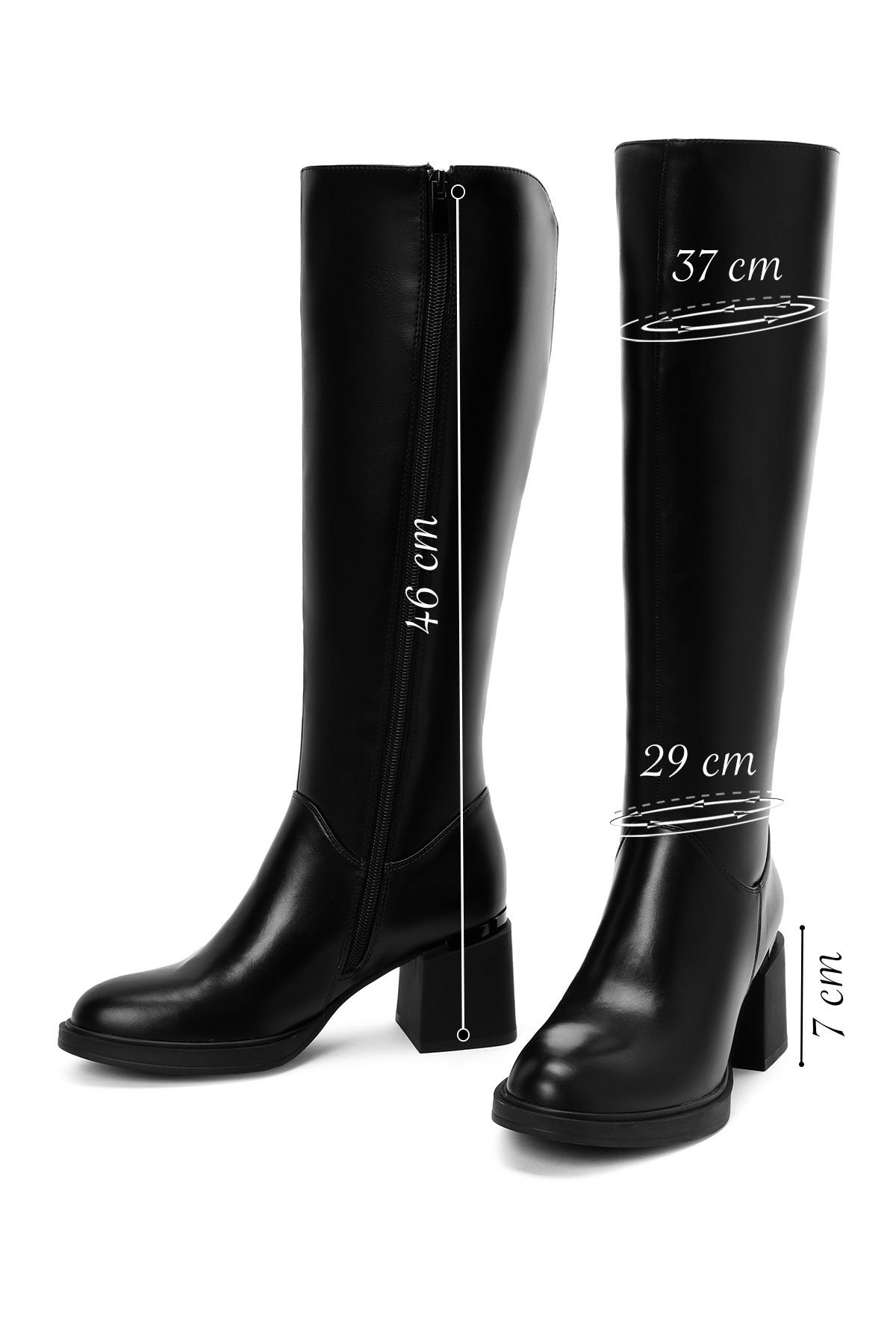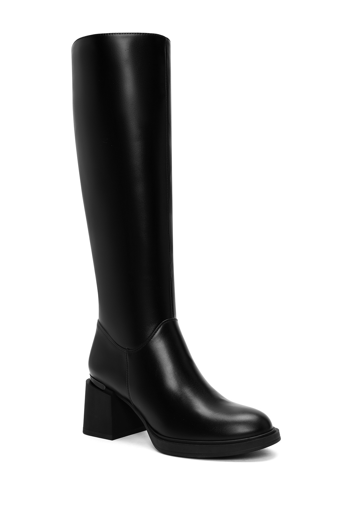 • Kadın Siyah Fermuarlı Kalın Topuklu Çizme