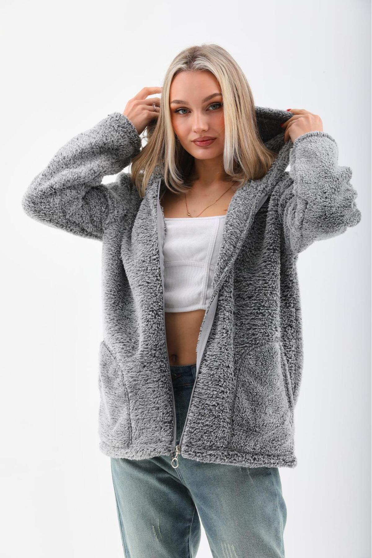 KADIN KAPÜŞONLU FERMUARLI WELSOFT YUMUŞAK KUMAŞ YEŞİL POLAR