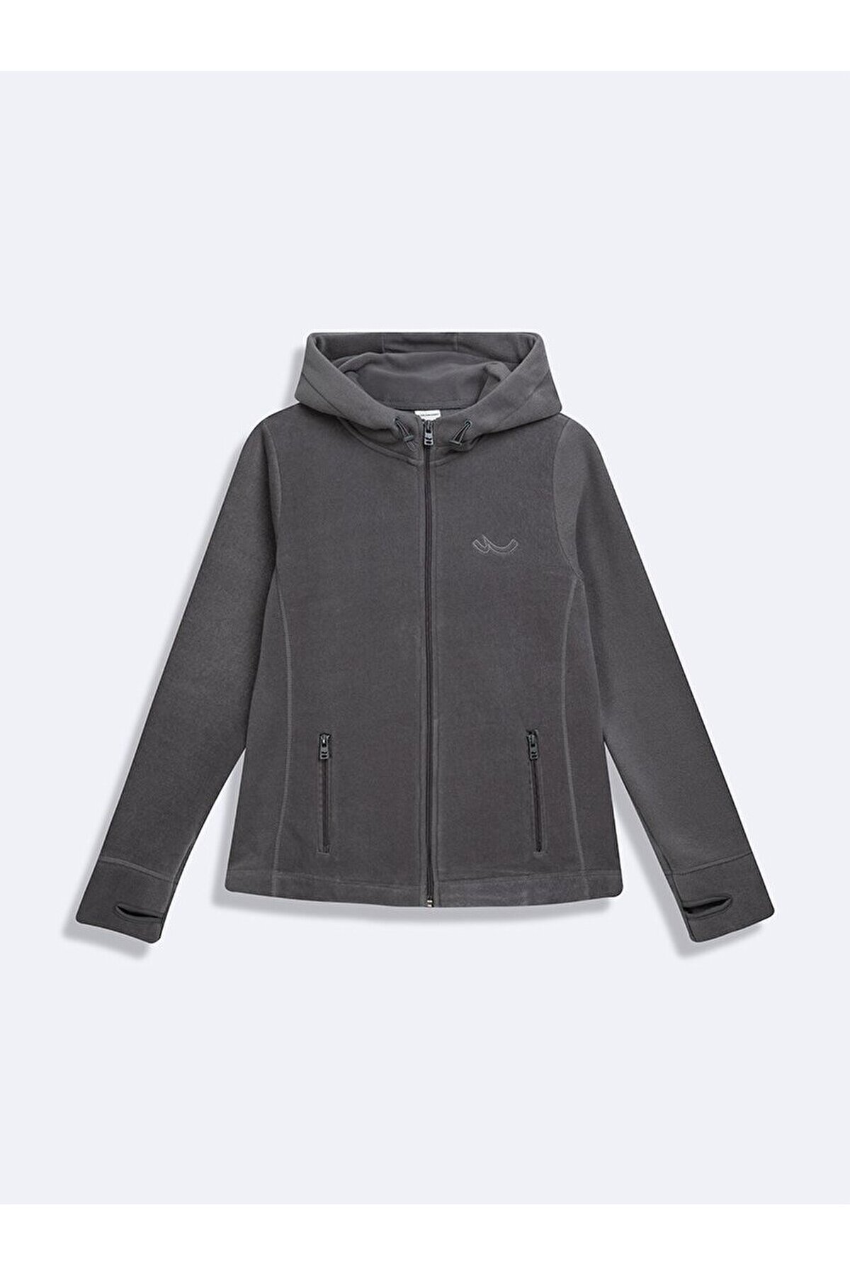 Fermuarlı Regular Kapüşonlu Polar Düz Fit Siyah Sweatshırt