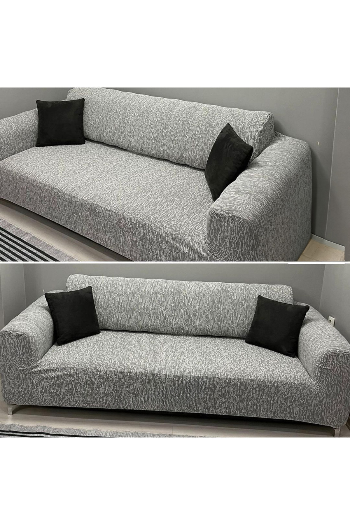 Jakarlı 3 Kişilik Kanepe Örtüsü Lastikli Koltuk Örtüsü Çekyat Örtüsü Koltuk kılıfı