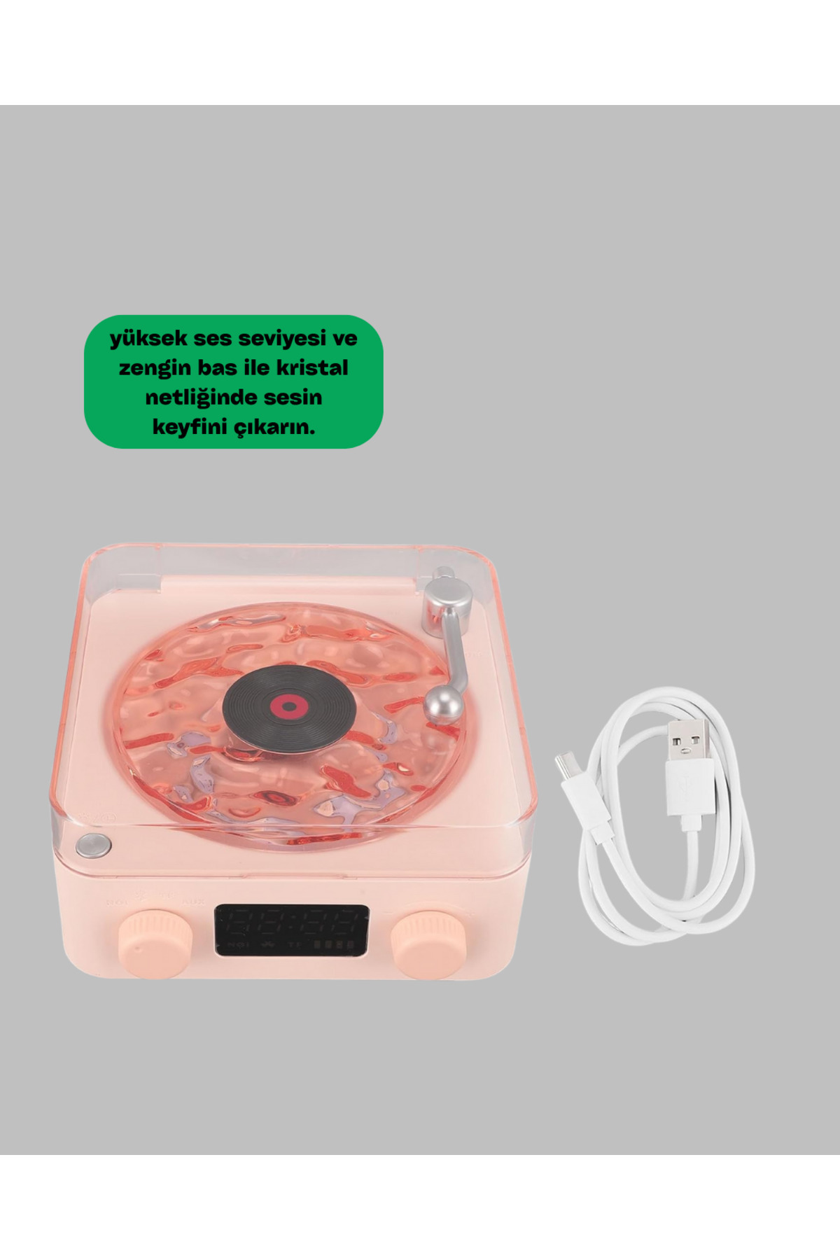 Şık retro plak çalar tasarımı, modern fonksiyonlarıyla birleşerek hem göz alıcı hem pratik bir cihaz oluşturur.