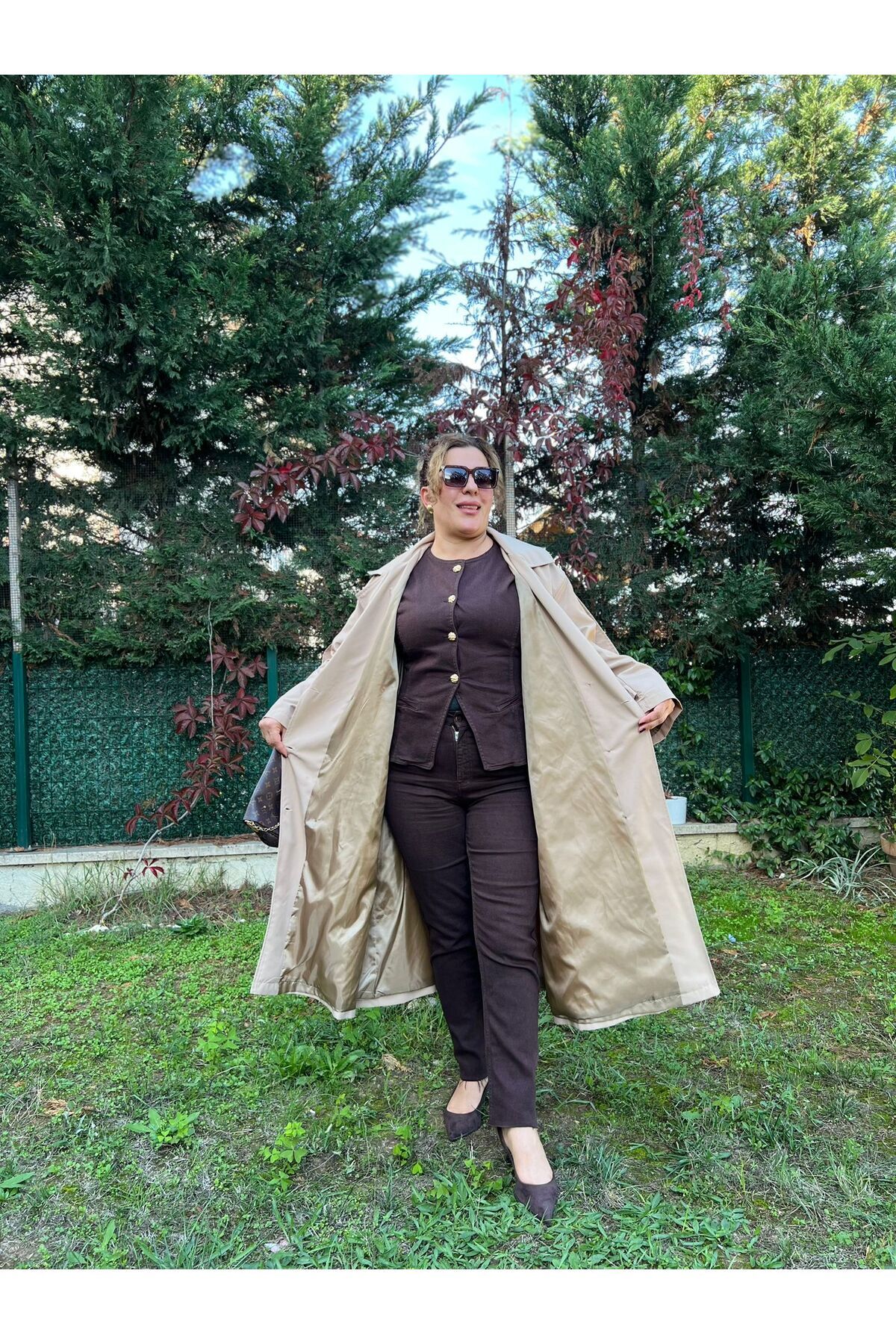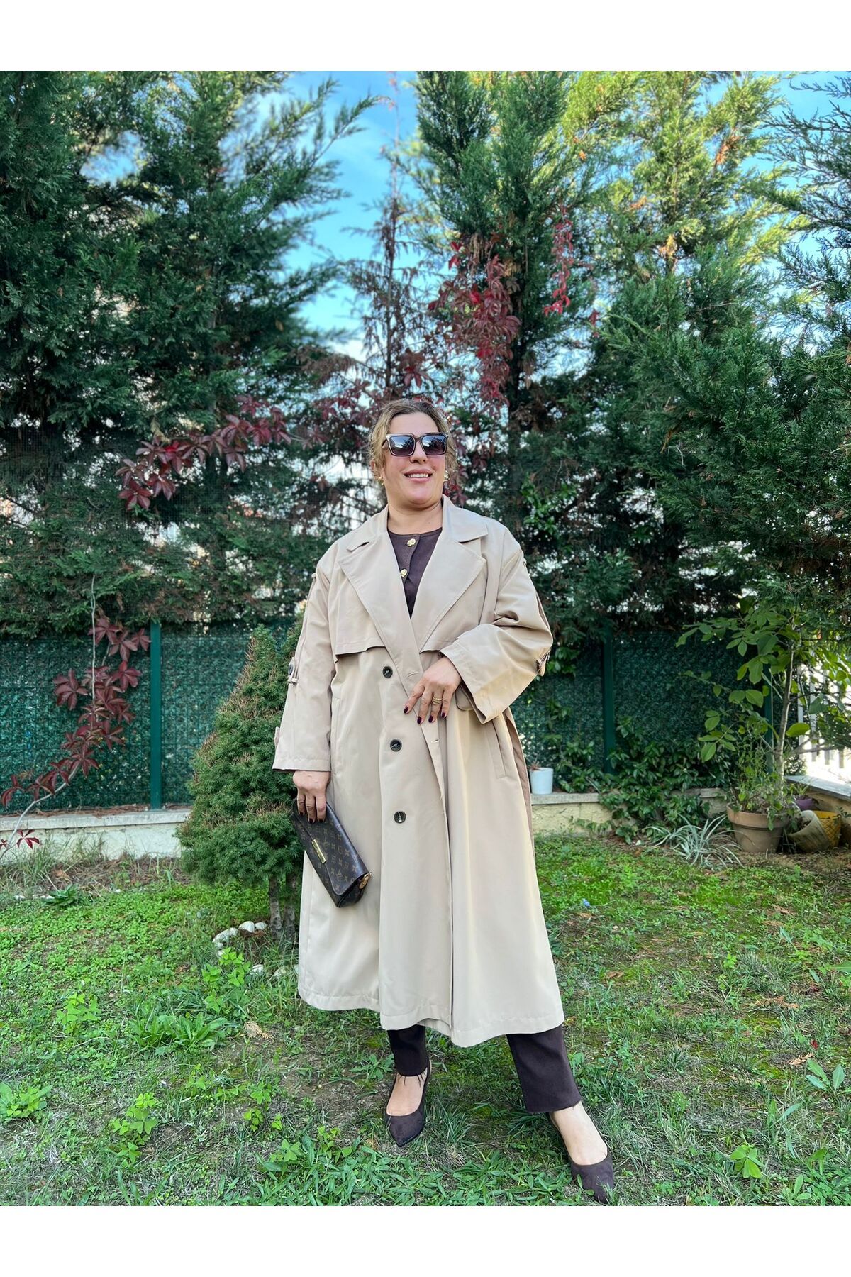 Oversize Rahat Kalıp Büyük Beden Astarlı Trençkot